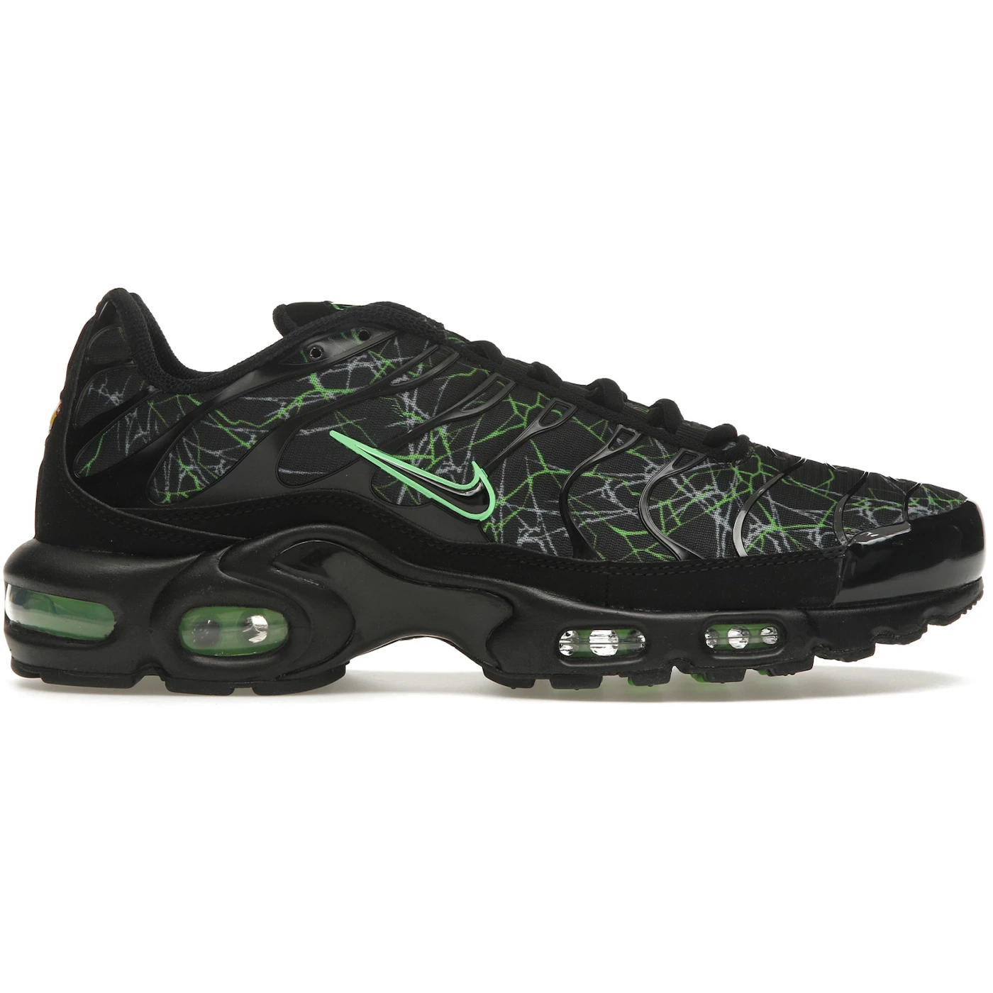 The Nike Air Max Plus Shattered Glass features a Black/Green colorway. This Nike Air Max Plus was first released for $180.