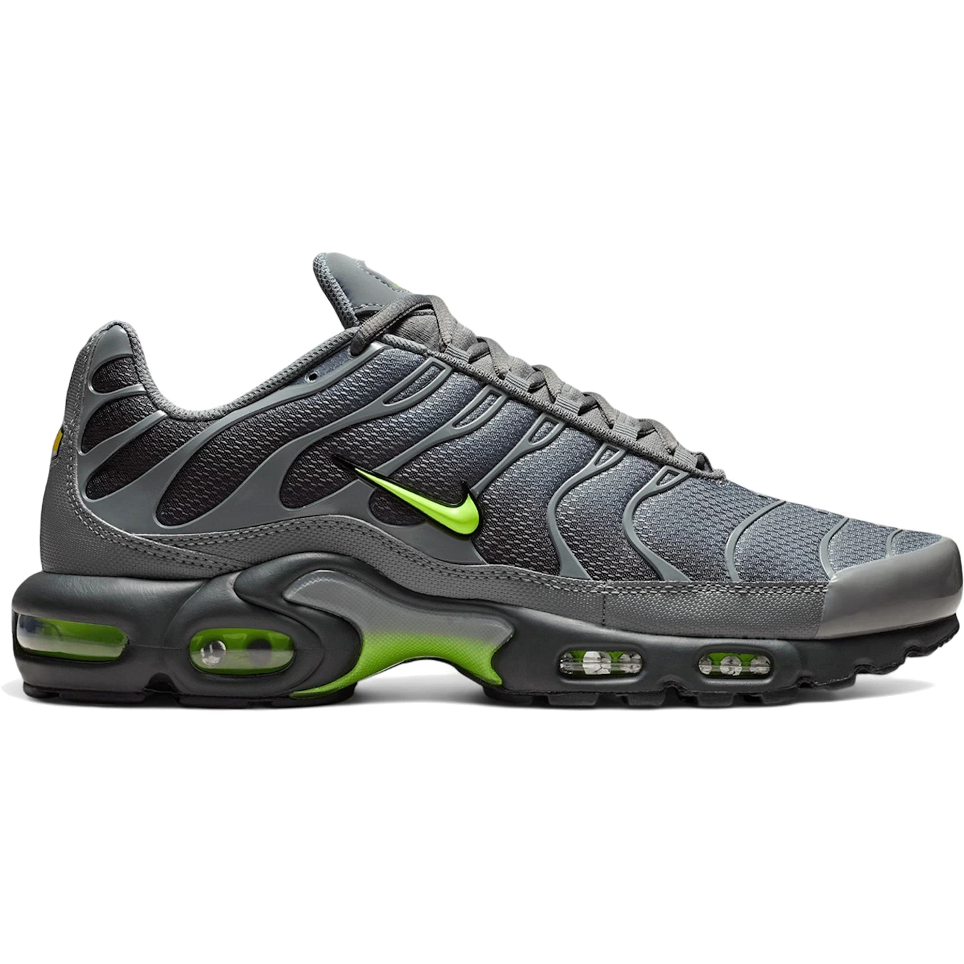 The Nike Air Max Plus Smoke Grey Volt features a Smoke Grey/Dark Smoke Grey/Black/Volt colorway. This Nike Air Max Plus was first released for $190.