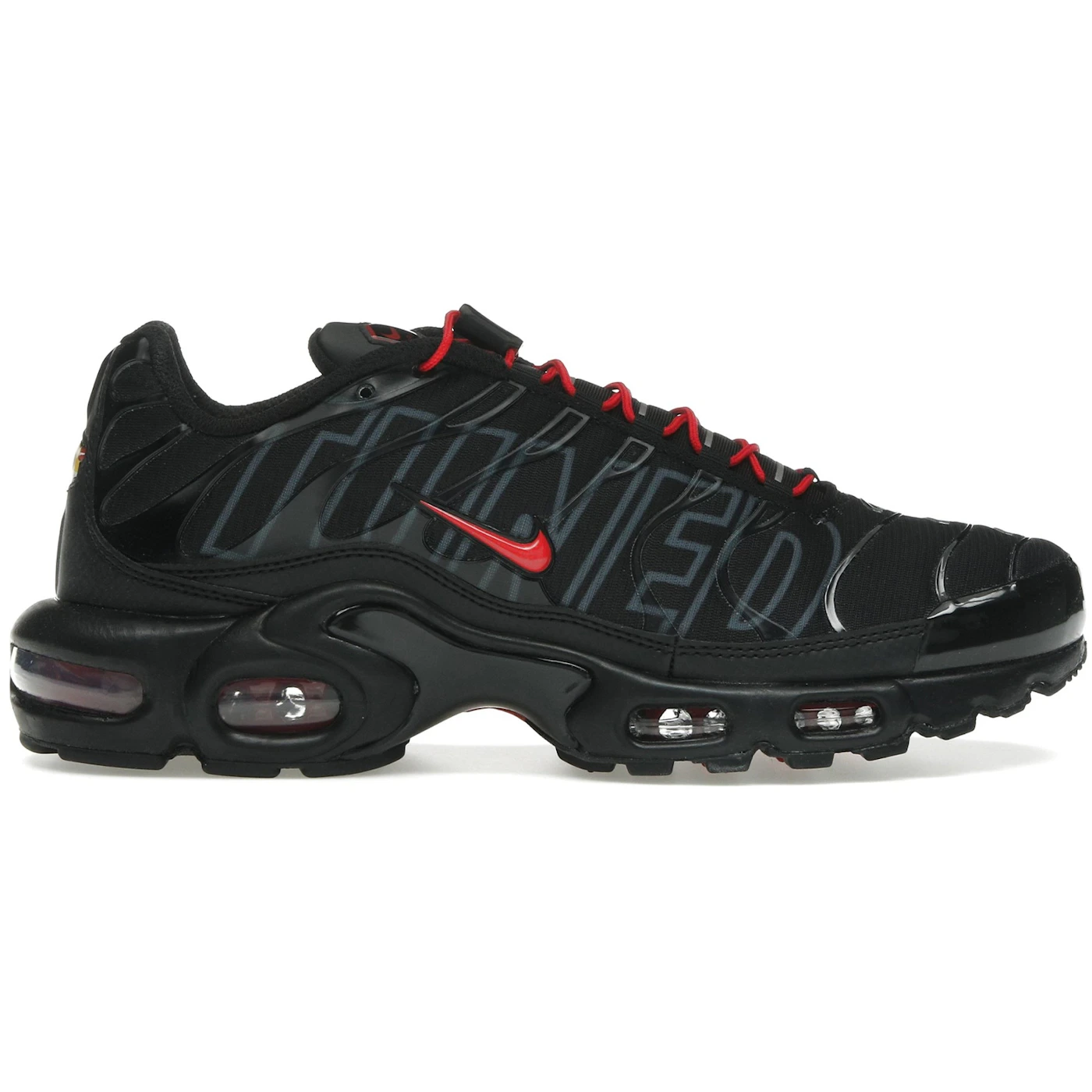 The Nike Air Max Plus Tuned Air Black Red features a Black/Red colorway. This Nike Air Max Plus was first released for $180.