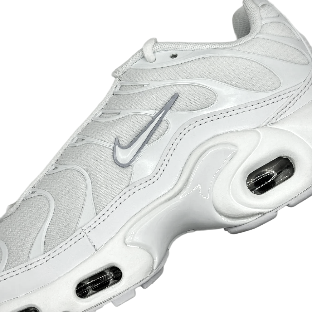 This Air Max Plus’s white top was composed of elastic material. Additionally, it included a rib-style support system that was intended to give the sneaker a more attractive look while simultaneously giving it greater stability than it otherwise would have. In order to add a little brightness to the white shoe, silver accents were also incorporated into the design.