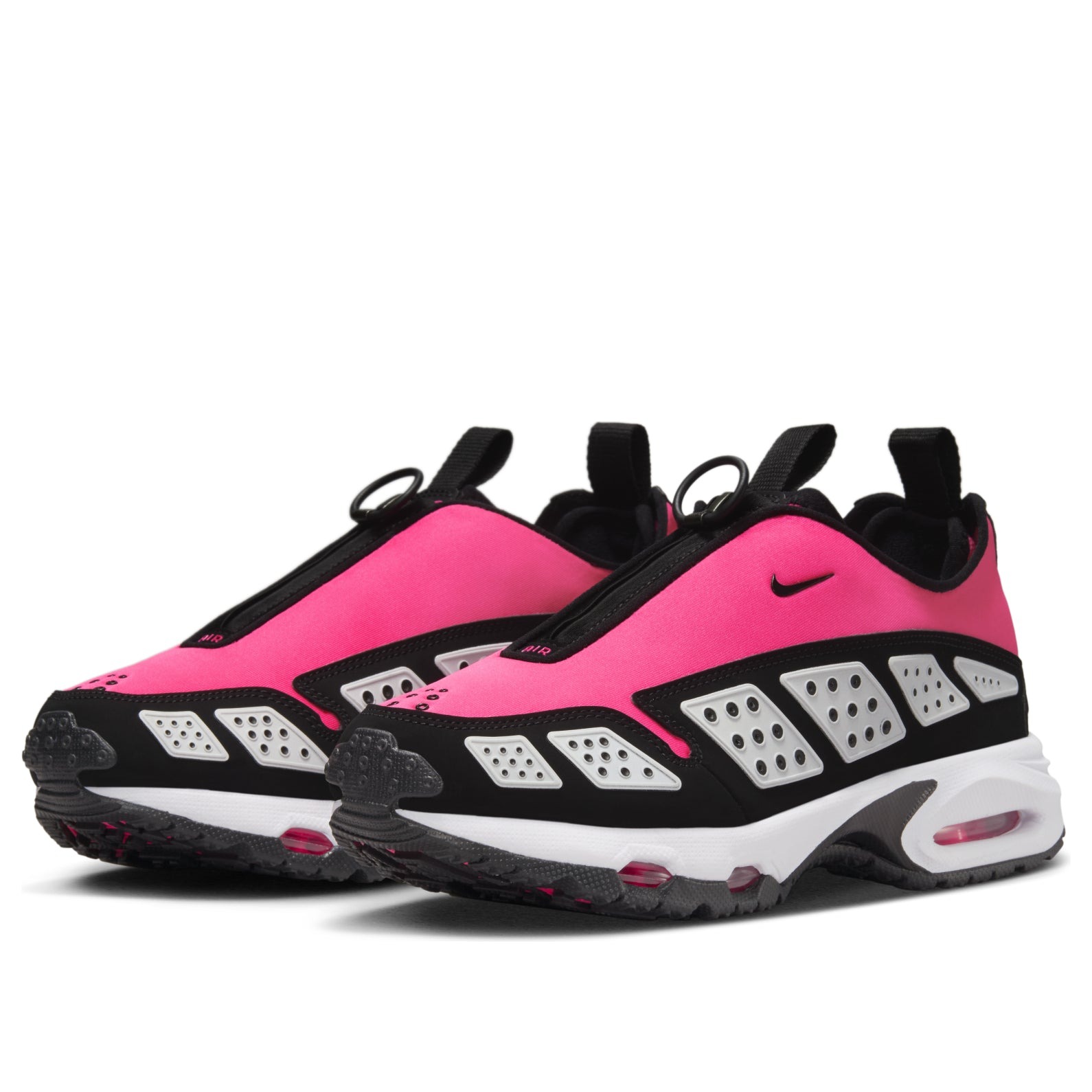The Nike Air Max Sunder Hyper Pink Black (Womens) combines a neoprene-like upper with a zip-up shroud, creating a smooth and streamlined design. Its structure includes Max Air cushioning and reflective vented panels for comfort and practicality. The reimagined Hyper Pink Black Air Max Sunder (Womens) by Nike was originally released in 1999 and has a neoprene-like upper that provides flexibility and a snug fit. A zip-up shroud overlays the laces for a streamlined appearance, while reflective vented panels improve airflow. The shoe houses visible Max Air cushioning in the heel and forefoot for exceptional comfort. The bold combination of hyper pink, black, and white highlights its dynamic visual appeal. Something we, the experts, love about the Nike Air Max Sunder Hyper Pink Black (Womens) is the all-White chunky-style sole that catches the attention. The hidden laces also give the shoe a refined look. This design was launched on the 6th of August 2024 and retailed at $180.