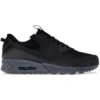 Using 20% recycled materials, the Nike Air Max Terrascape 90 Black updates the silhouette and construction of the Air Max 90 and dresses it in a stealthy colorway. The Nike Air Max Terrascape 90 in a Black / Black / Black / Black colorway features a lightweight mesh upper with synthetic triple-stitched overlays that provide structure and durability. Plastic hits on the eye stays also lend durability and structure, not to mention style. The black Nike swooshes extend past the collar to become the pull tab on the heel that echoes the pull tab on the black mesh tongue that sports tonal Terrascape branding. The aspect of this sports shoe that our sneaker experts appreciate the most is the iconic sole unit. The Nike grind rubber outsole is accented with Nike branding as it provides traction, and the Crater Foam midsole covered by translucent rubber on the sidewalls houses a visible Air Max unit in the heel for ultimate cushioning. The Nike Air Max Terrascape 90 Black was released on October 18, 2022 for a retail price of $140.