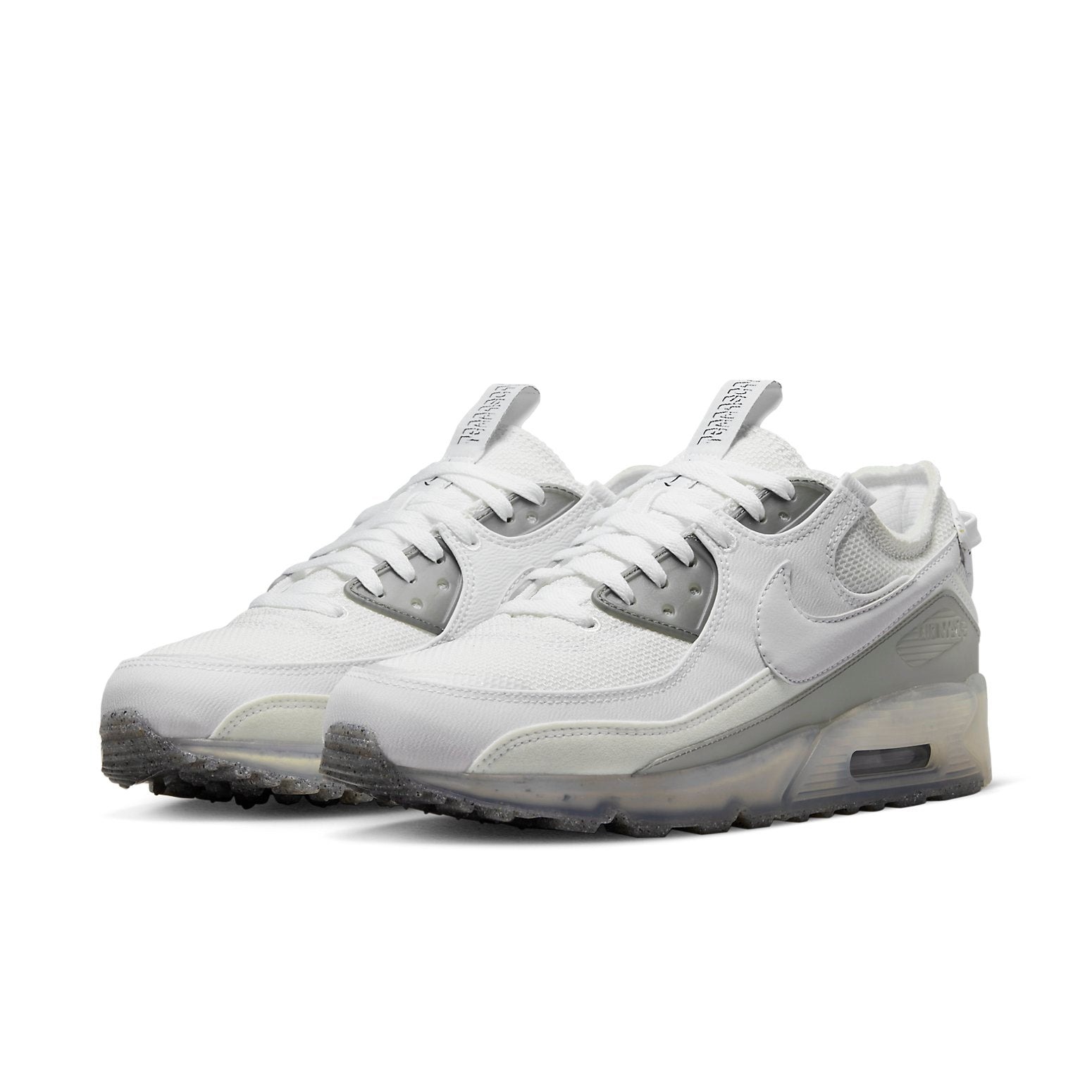 The Nike Air Max Terrascape 90 White Gray draws inspiration from the classic Air Max 90, revitalizing its iconic design with contemporary materials and a semi-translucent midsole, with the silhouette getting an overall white/gray color scheme. The White Gray Nike Air Max Terrascape 90 prioritizes sustainability, utilizing recycled materials throughout. The sneakers incorporate a durable translucent outsole that extends around the mudguard, enhancing overall durability. Meanwhile, the upper section remains breathable thanks to the mesh construction, ensuring a fresh feel. These sneakers maintain their design’s essence by featuring a Crater Foam midsole with a Max Air unit, providing unmatched comfort. Notable updates include the introduction of the new Terrascape logo on the tongue and the addition of sleek triple-stitching around the collar. Completing the modern look, a contemporary Swoosh design extends to the rear of the shoe. What our experts love about the Nike Air Max Terrascape 90 White Gray is its sustainable construction. These sneakers showcase a commitment to environmental responsibility by utilizing recycled materials, with at least 20% recycled content by weight incorporated into the mixed-material upper. The sneaker debuted for $140 on December 16th, 2022.