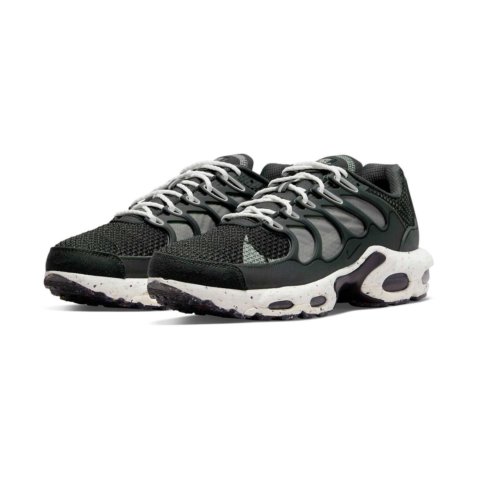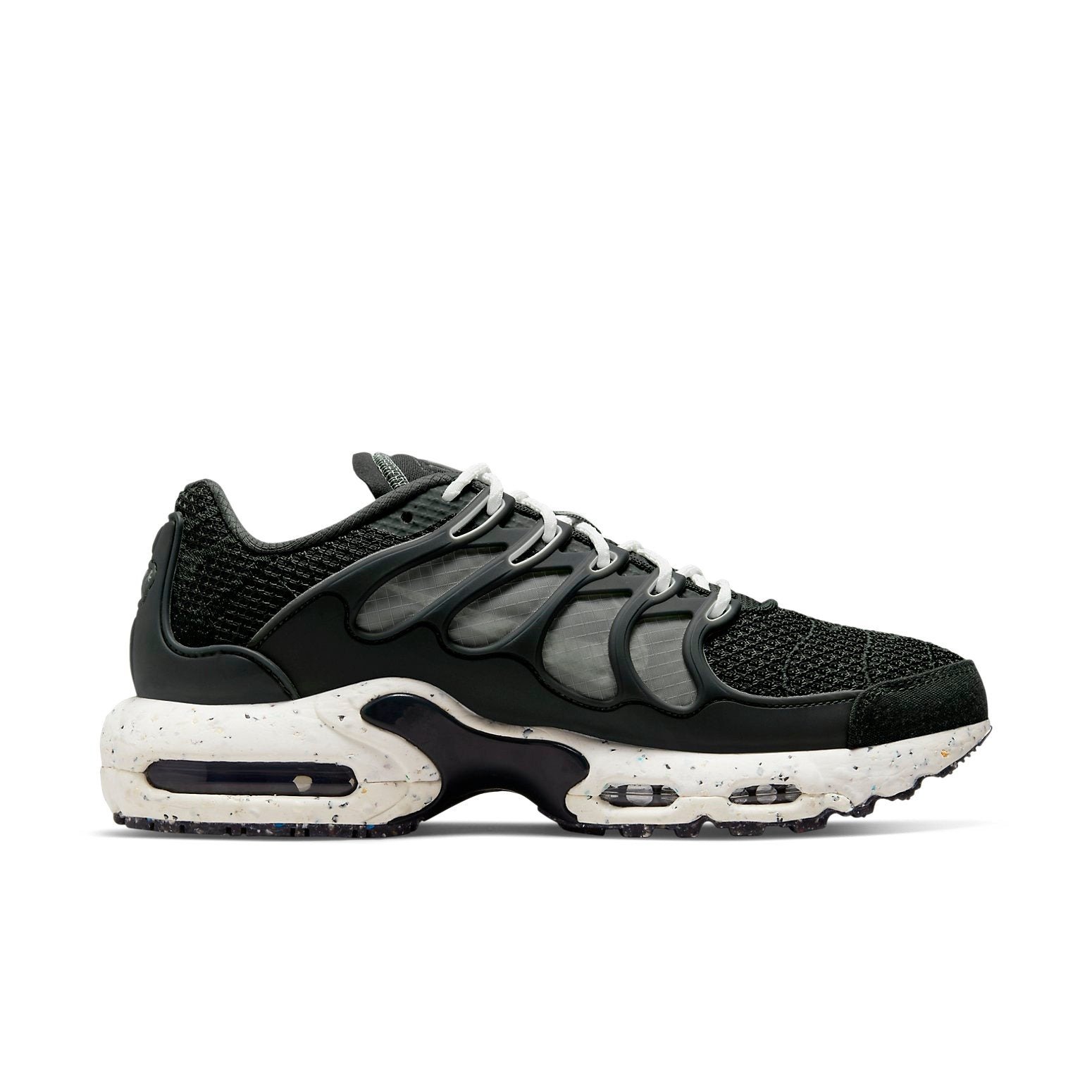 The Nike Air Max Terrascape Plus Off Noir is a sustainable model designed for running. This pair of shoes has a neutral color palette and is made from materials that aim to offer support and breathability. This Nike Air Max model is composed of at least 20% recycled materials by weight. Both the toebox and collar of the shoe are made from black mesh. The upper part of the shoe is also made of lightweight materials, including mesh and plastic. The midsole and rubber outsole are designed to absorb shocks and provide traction to prevent the wearer from slipping, and they include AIR pods.A feature that our group of experts particularly enjoy about the Nike Air Max Terrascape Plus Off Noir is the reflective lace guard that glows in the dark to help runners at night. This model became available for purchase on June 24th, 2022, for a starting retail price of $185.