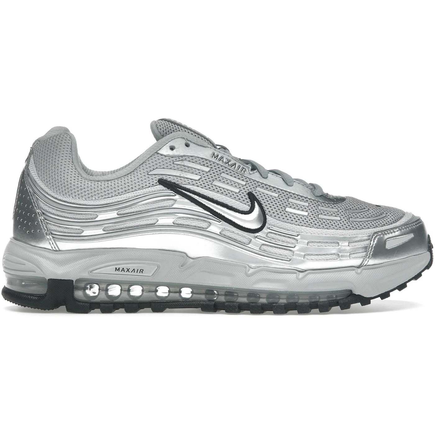 The Nike Air Max TL 2.5 Metallic Silver features a Flat Silver/Metallic Silver-Black colorway. This Nike Air Max TL 2.5 was first released for $180 on May 13, 2025.