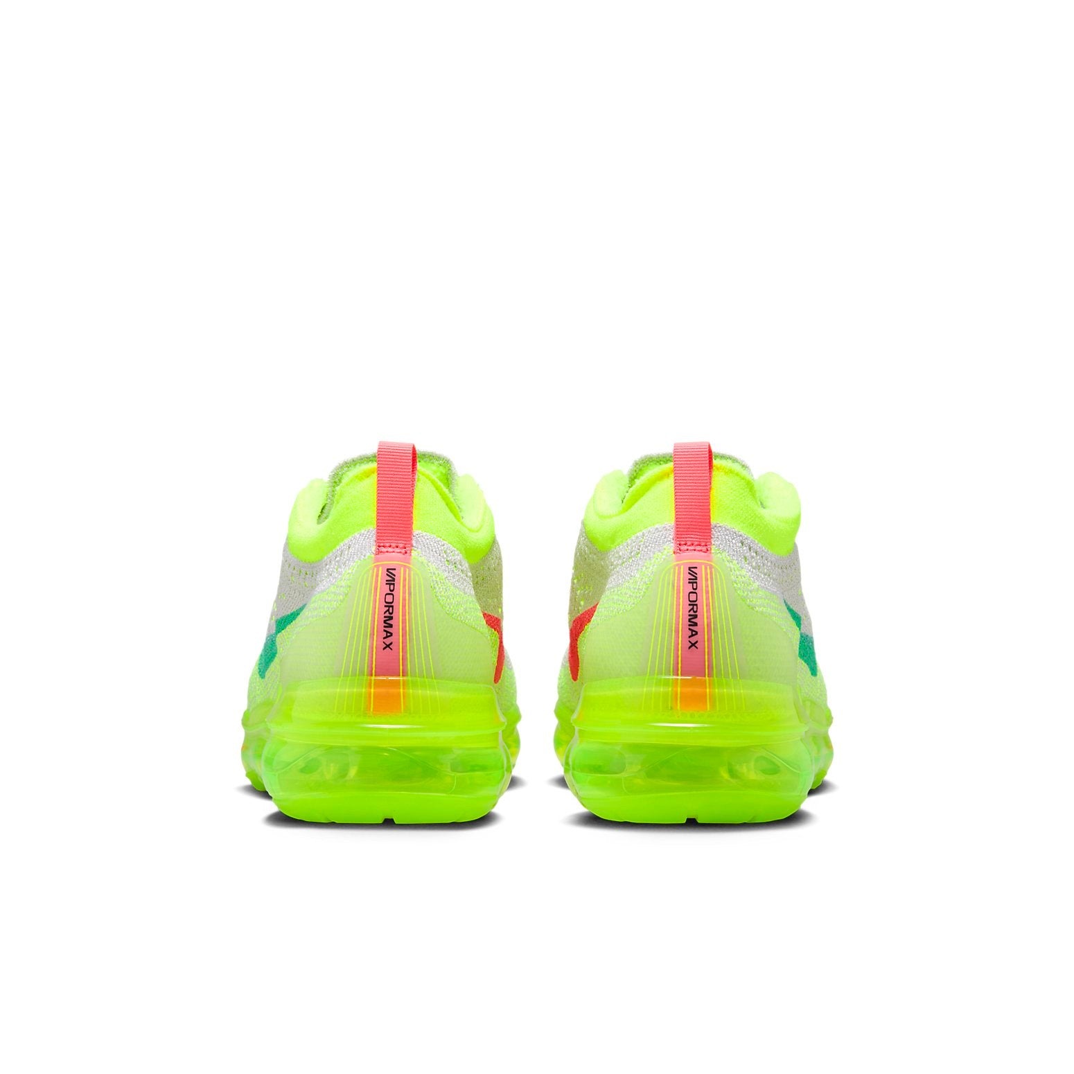 The Nike Air Vapormax 2023 Flyknit Vast Grey Volt is an athletic shoe featuring a Flyknit fabric upper in Vast Grey and Volt s neon yellow hue. The mid- and outsole unit is done in transparent Volt, and the Swoosh alternates between Hot Punch on the interior and Emerald Rise on the exterior. The Vapormax branded heel tab and inner sole Swoosh add additional pops of Hot Punch. The design is one of Nike s most technically complex shoes, involving an eight-year development process that culminated in its market release. Initially released in 2017, the Vapormax is remarkable for its foam-free Air unit, which utilizes pure Air cushioning underfoot. Laces and a rounded-toe cap complete the sneaker. In our opinion, the best feature of the shoe is its transparent Volt sole, which further stokes the shoe s feeling of walking on air. The Nike Air Vapormax 2023 Flyknit Vast Grey Volt was first released on April 1, 2024, and retailed at $210.