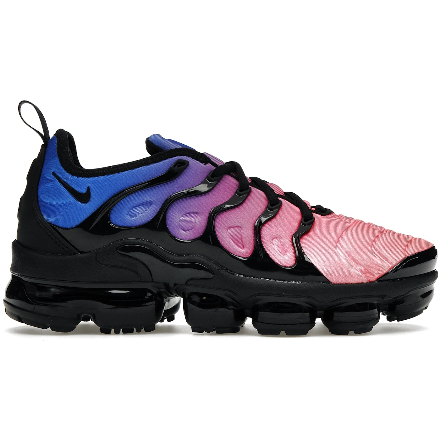 The Nike Air VaporMax Plus Cotton Candy (Women s) is a women s sizing colorway from the Nike Air VaporMax Plus line sporting a racer blue, black, and hyper pink color combination.The Nike Air VaporMax Plus Cotton Candy (Women s) looks as sweet as its moniker implies. The supportive black glossy TPU cage of the upper is flowing and fluid in design and features a gradient color scheme, starting with racer blue at the heel and tongue and finishing with hyper pink at the toe. Nike and VaporMax branding are discreetly incorporated at the ankle’s tongue, heel, and sides. Walking-on-air tech in the sole unit gives this shoe its bounce.Our experts at Newsole think that the fusion of black gloss and bright colors is an energetic combo that makes this shoe stand out. The Nike Air VaporMax Plus Cotton Candy (Women s) was released at a retail price of $210 on September 10, 2022.