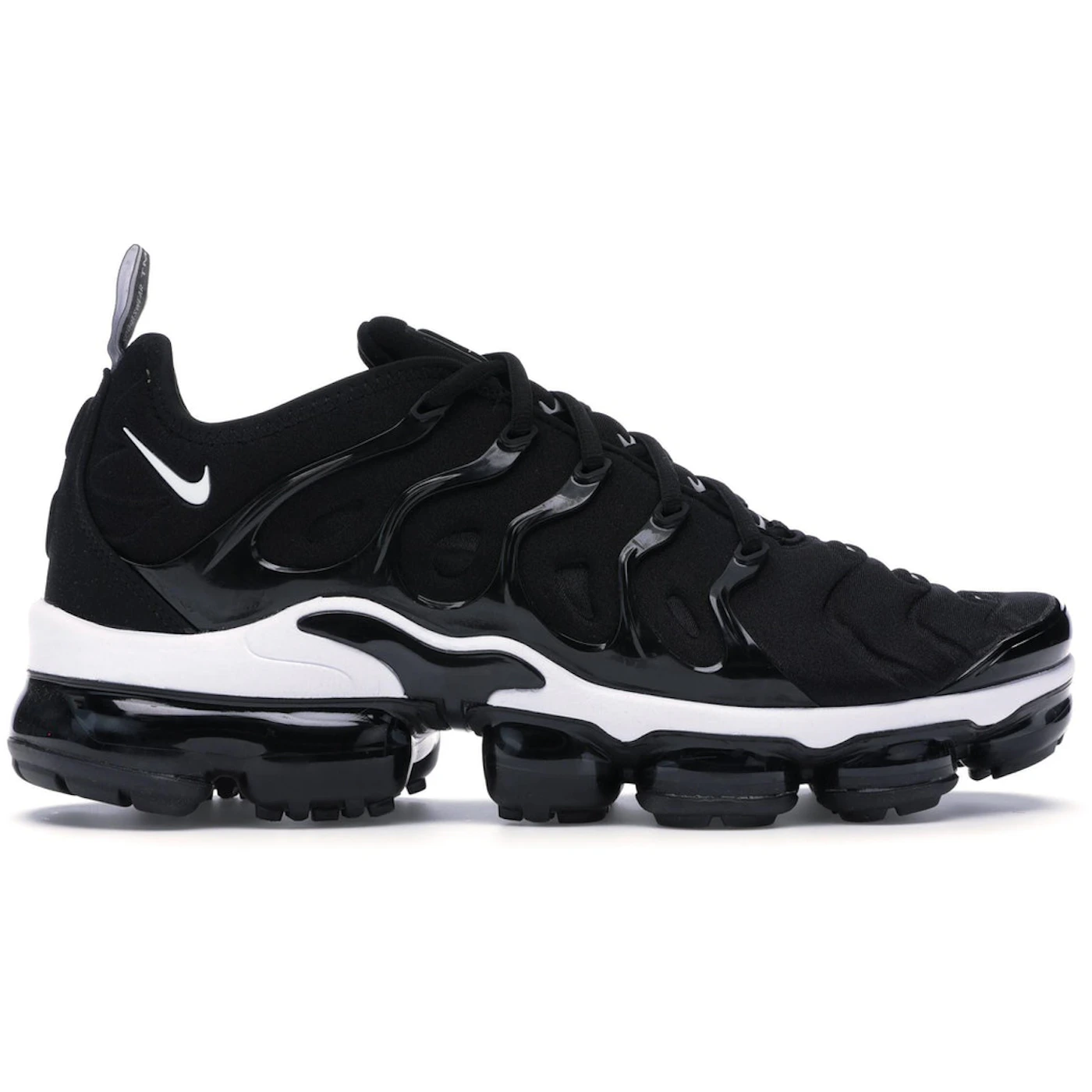 The Nike Air VaporMax Plus Overbranding Black amalgamates white and black Swooshes on the upper. This silhouette features an exclusive VaporMax Plus upper with a cage-like construction.The Overbranding Black sneakers incorporate white and black Swooshes on the heel pull tab, TPU overlays, the midsole, and the tongue hence earning the moniker “Overbranding”. This sneaker comes in a white and black colorway. The upper features a black neoprene mesh sandwiched by black reflective TPU overlays. The upper sits on a white panel interrupted by black glossy black midsole. The sole is a pure black VaporMax sole unit providing lightweight air cushioning. This hybrid silhouette from the Nike Air VaporMax Plus Triple Black and AirMax features a Vm logo beneath the heel pull tab for distinction.The feature that endears us to the Overbranding Black sneakers is the contrasting black and white colorway that makes the Swooshes stand out even more. This is a sneaker that easily blends with any Nike apparel without sticking out like a sore thumb. The Nike Air VaporMax Plus Overbranding Black was released on 21st November 2018 retailing for $190.