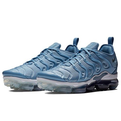 The Nike Air VaporMax Plus Work Blue is a unique colorway of the VaporMAx Plus, a hybrid sneaker that combines the cushioning technology of the VaporMax with an Air Max Plus upper.The shoes have an interesting color palette that combines a light blue hue with black and white. The light blue hue covers the upper while the midsole is fully white and the outsole black with a gradient effect that transitions to a transparent hue. The upper is made from a combination of materials including lightweight mesh and synthetic overlays and features a TPU cage that wraps around the midfoot. The sole unit, on the other hand, comprises of individual air pods strategically placed on the underfoot to deliver targeted cushioning.The standout feature of the Nike Air VaporMax Plus Work Blue is the TPU cage that covers the upper to provide better stability and support while also making the shoes durable. The shoes were first released for retail on 4th August 2018 at the price of $190.