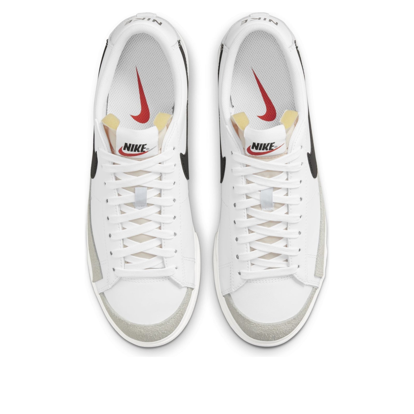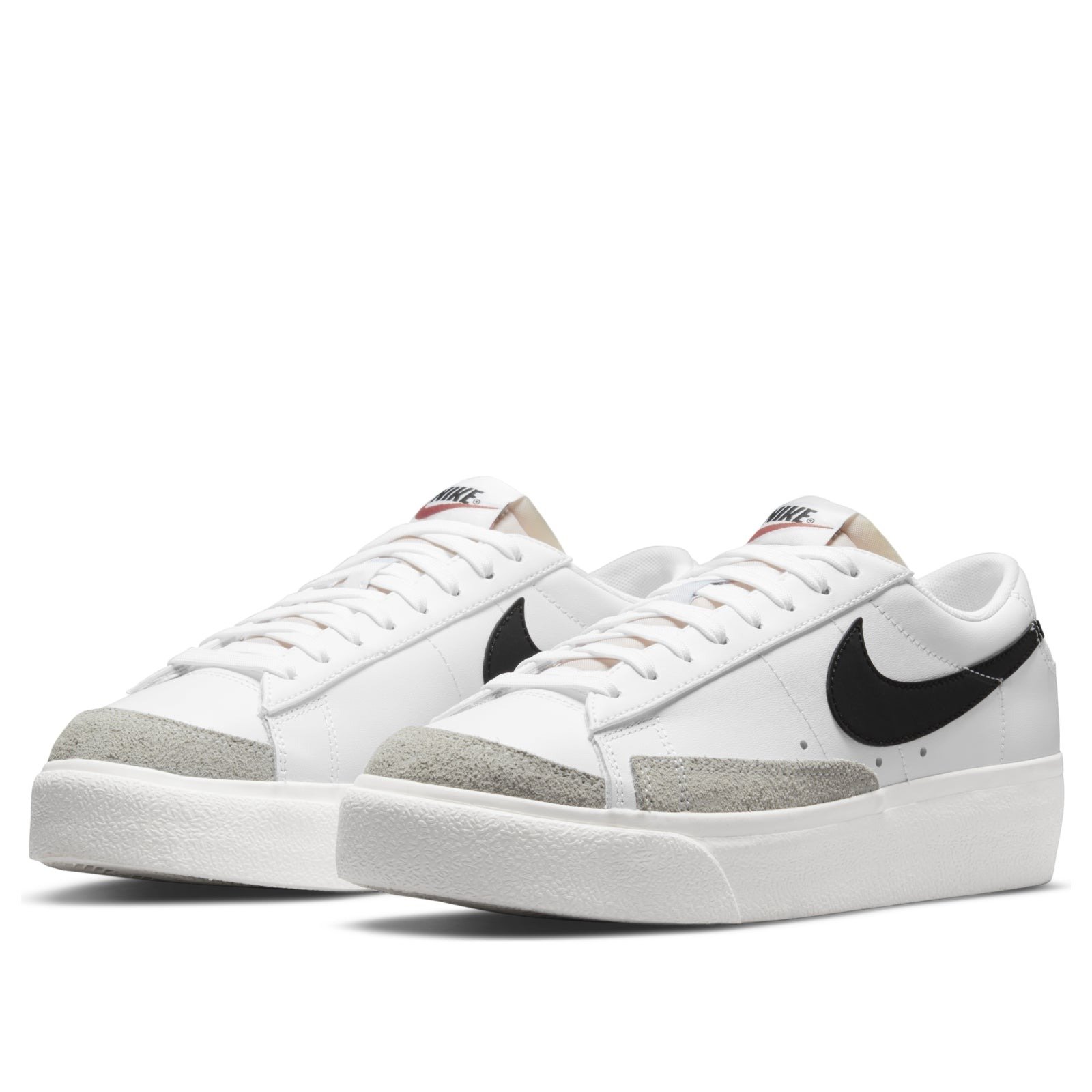 The Nike Blazer Low Platform White Black W is a basketball shoe designed by Bill Bowerman, co-founder of Nike.The Nike Blazer Low Platform for women has a white leather upper festooned by a conspicuous black Swoosh with tonal suede overlay accents at the shoe lateral forefoot and toe. The sneaker also has an exposed foam tongue. The shoe sits on double-tape detailing platform midsoles, while underfoot are herringbone-tread rubber outsoles for extra grip.The Nike Blazer Low Platform White Black W shoe was first released in July 2021 with a retail price set at $95.