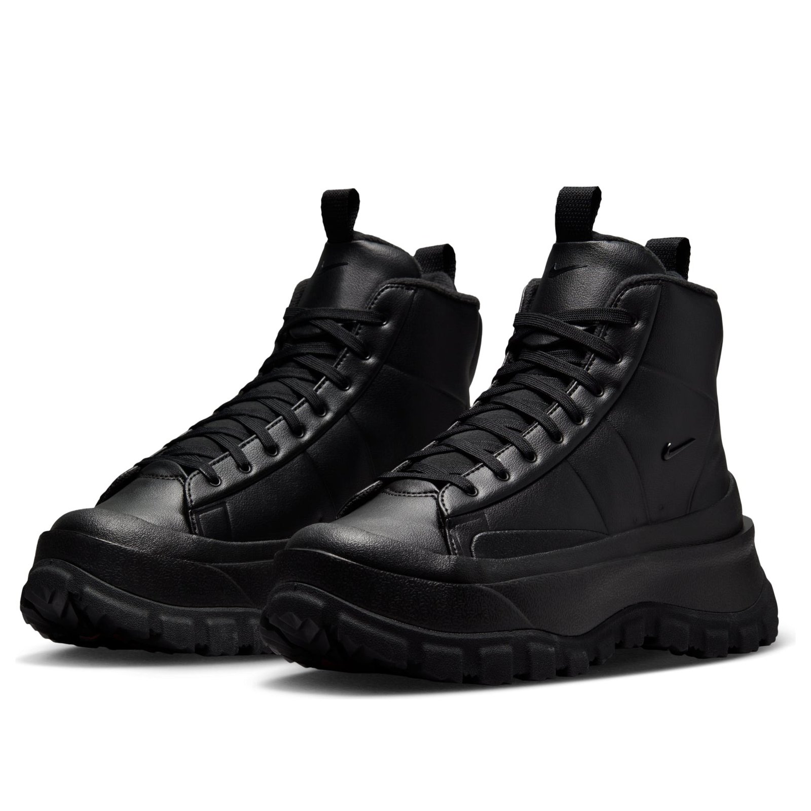 The Nike Blazer Roam Mid Black (Women’s) features a Black/Black/University Red/Racer Blue colorway. This Nike Blazer Roam Mid was first released for $120.