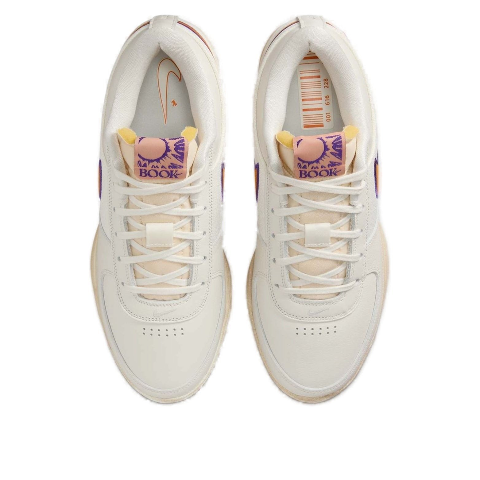 The Nike Book 1 EP CHBL Suns features a White/Orange-Purple colorway. This Nike Book 1 EP was first released for $150.