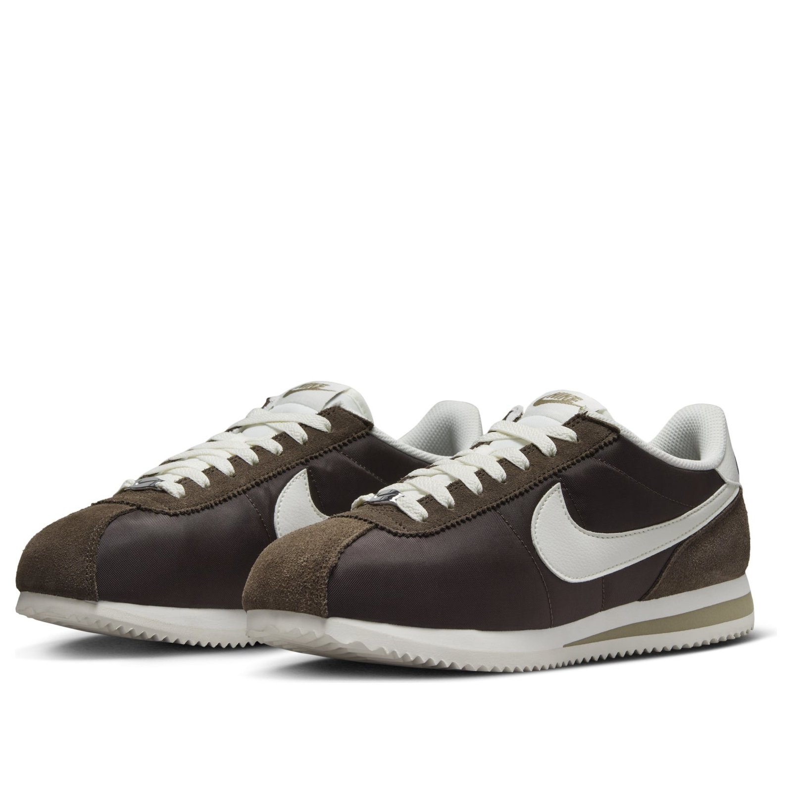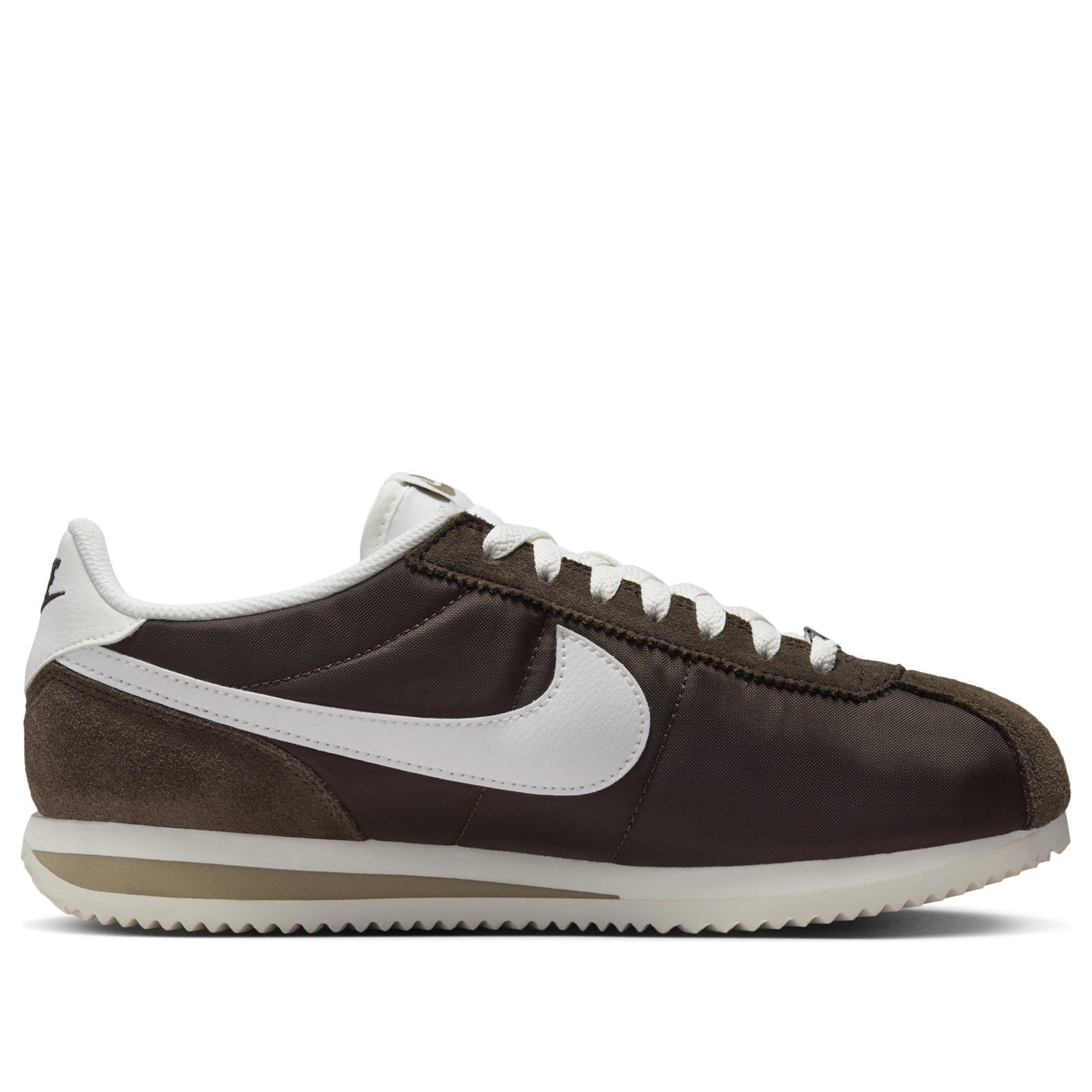 The Nike Cortez Baroque Brown (Women’s) revamps the classic Cortez runner design with a contemporary colorway of Baroque Brown, Sail, and khaki.Maintaining its 1972 retro appeal, the Baroque Brown (Women’s) Nike Cortez boasts a soft foam midsole in Sail with a khaki-colored wedge beneath the heel. The jagged design on the rubber outsole represents another heritage detail and increases traction. Reinventing the design for contemporary audiences, the sneaker offers a wider toebox than the original for lasting comfort. Baroque Brown covers the shiny textile upper and the suede details on the toebox overlay, the heel counter, and the eyelets. On the other hand, splashes of Sail on the Swoosh logos, the laces, the tongue, the heel tab, and the rubber outsole provide subtle color-blocking and a premium feel.Our experts like the way khaki balances the color combination and appears on the branding details. The women s size Nike Cortez Baroque Brown (Women’s) was released on April 2, 2024, and sold for $90.