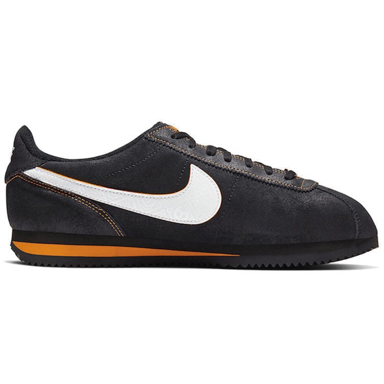 The Nike Cortez Day of the Dead 2019 model prominently features the colors Orange Blaze, black, and white, which define its overall look and aesthetic.The Nike Classic Cortez Day of the Dead 2019 edition was launched as a tribute to the traditional Mexican Day of the Dead holiday. It showcases a distinctive orange-and-black colorway with special design elements. The insole features a candlelight graphic as a nod to D a de los Muertos. Vibrant top stitching, tongue tag, and reflective white Swoosh logos create a colorful contrast. The upper is made of rough suede. Additionally, the lace medallion is adorned with gold script that reads “Cortez 72,” adding a refined finishing touch to the shoe’s overall design.The Nike Cortez Day of the Dead 2019 was released on October 25, 2019. At the time of its launch, this shoe had a suggested retail price of about $120.