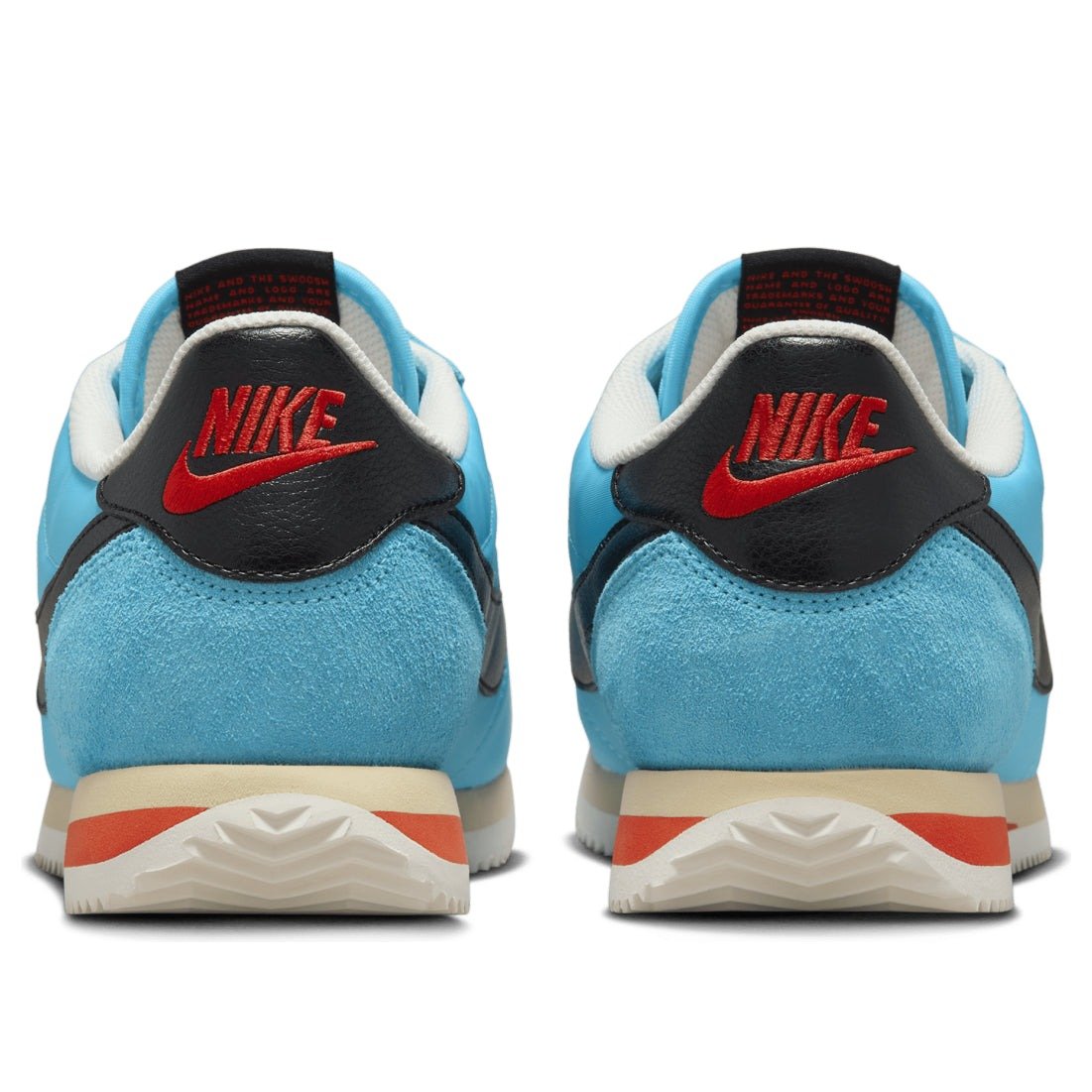 The Nike Cortez TXT Baltic Blue features a Baltic Blue/Black/Team Gold/Picante Red/Sail colorway. This Nike Cortez TXT was first released for $90.