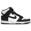 The women’s Nike Dunk High Panda (W) features white and black leather upper with a matching sole. From there, hits of red on the woven tongue label add some subtle flair.The women’s Nike Dunk High Black White (W) released in July of 2021 and retailed for $110.