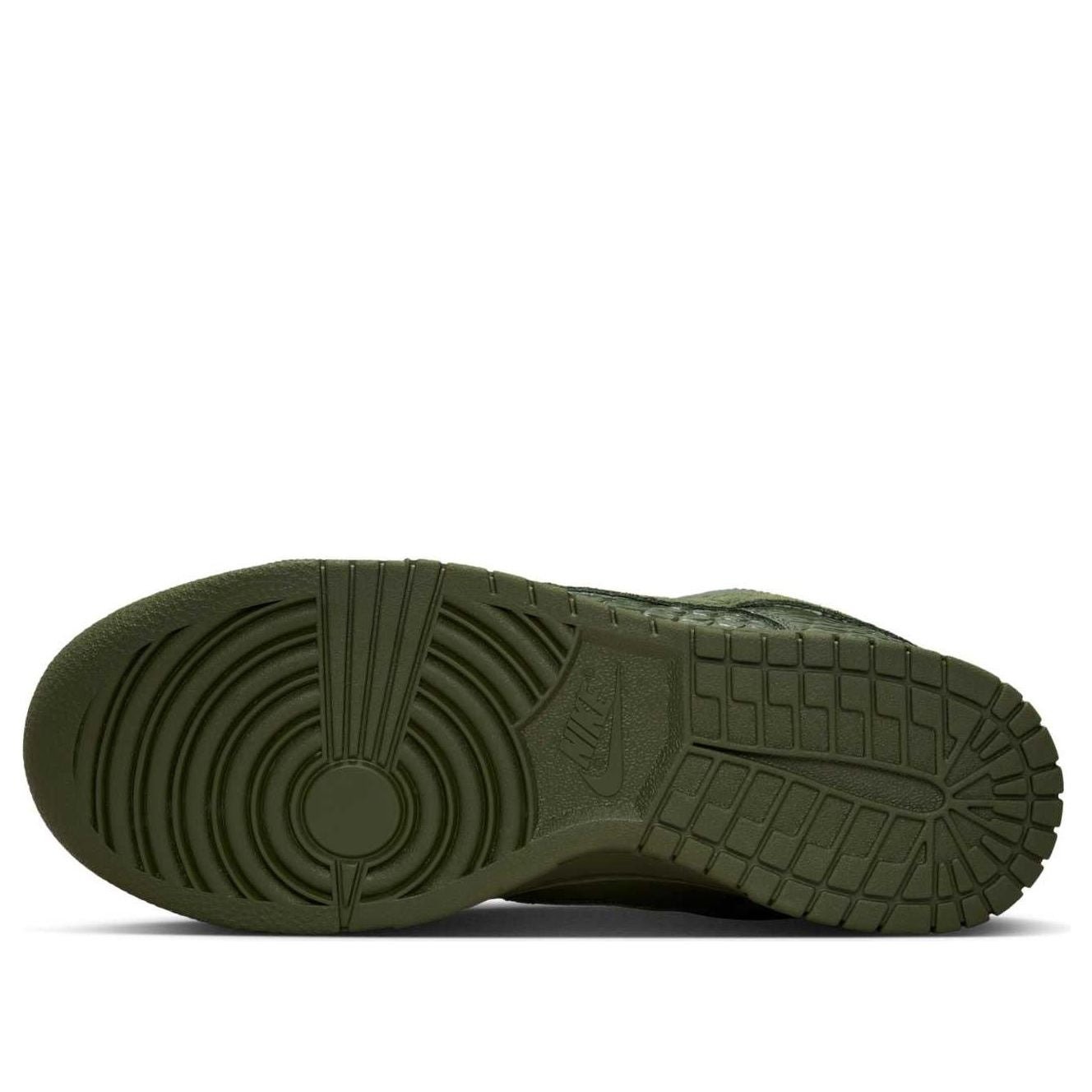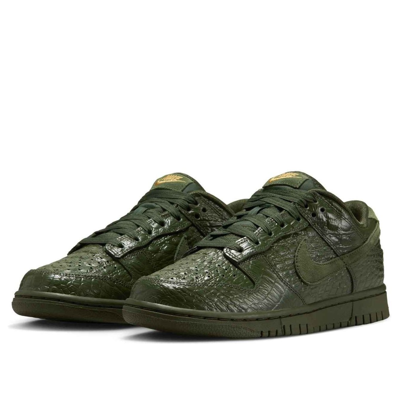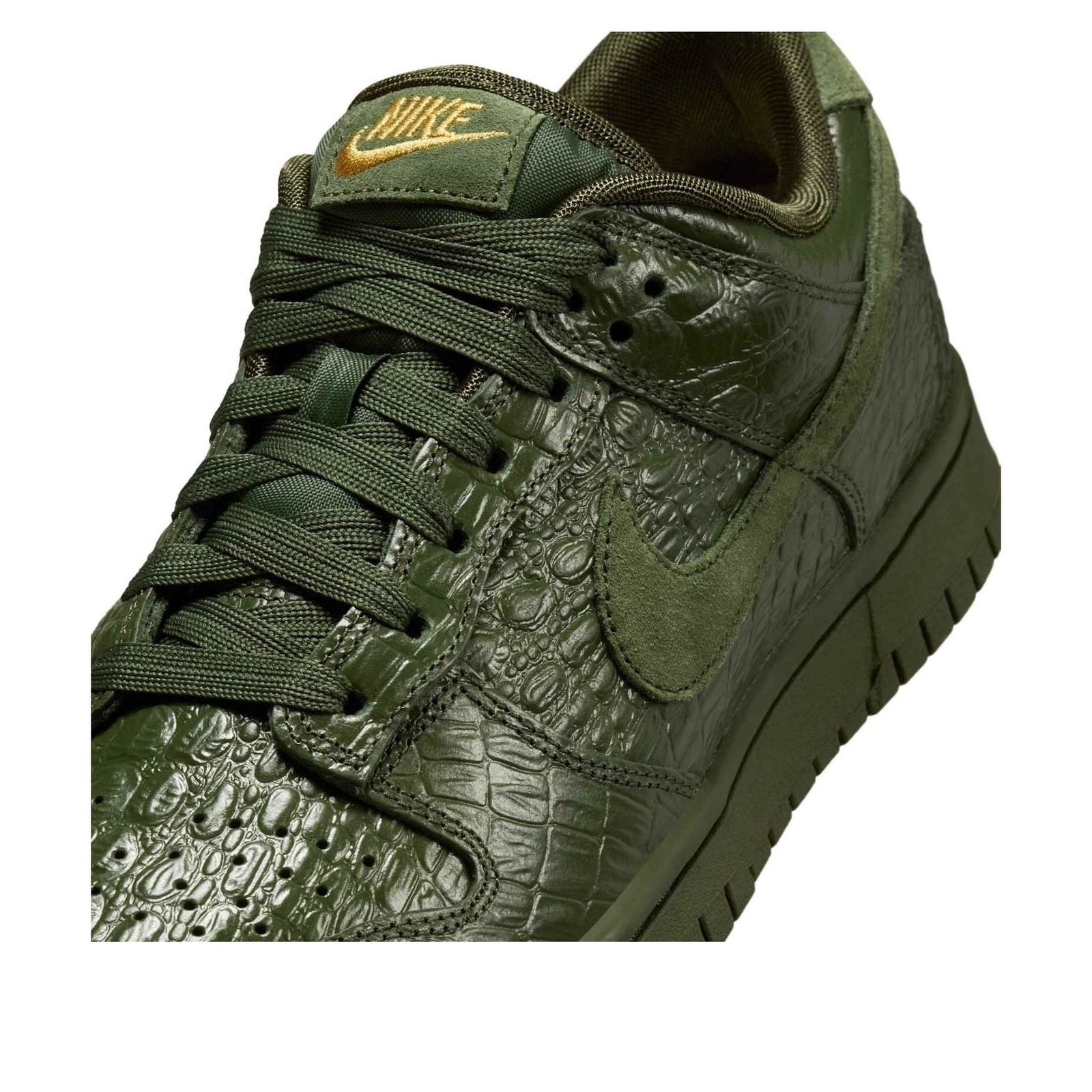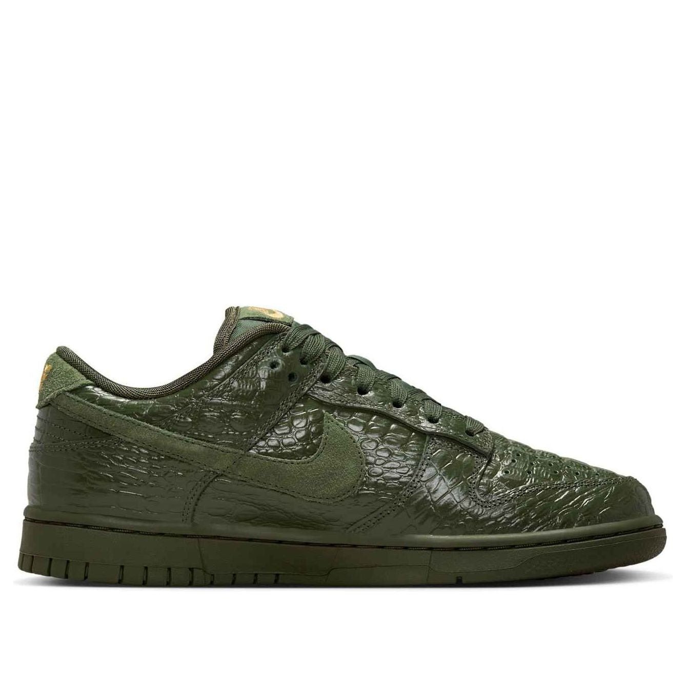 The Nike Dunk Low Crocodile (Womens) features a Carbon Green/Metallic Gold/Medium Olive colorway. This Nike Dunk Low was first released for $135.