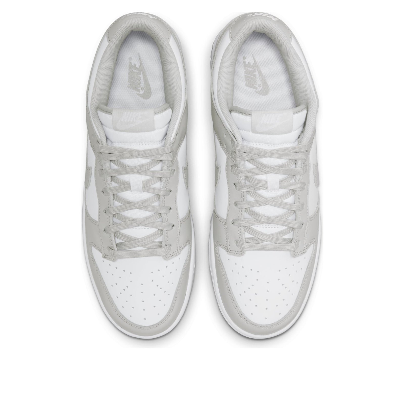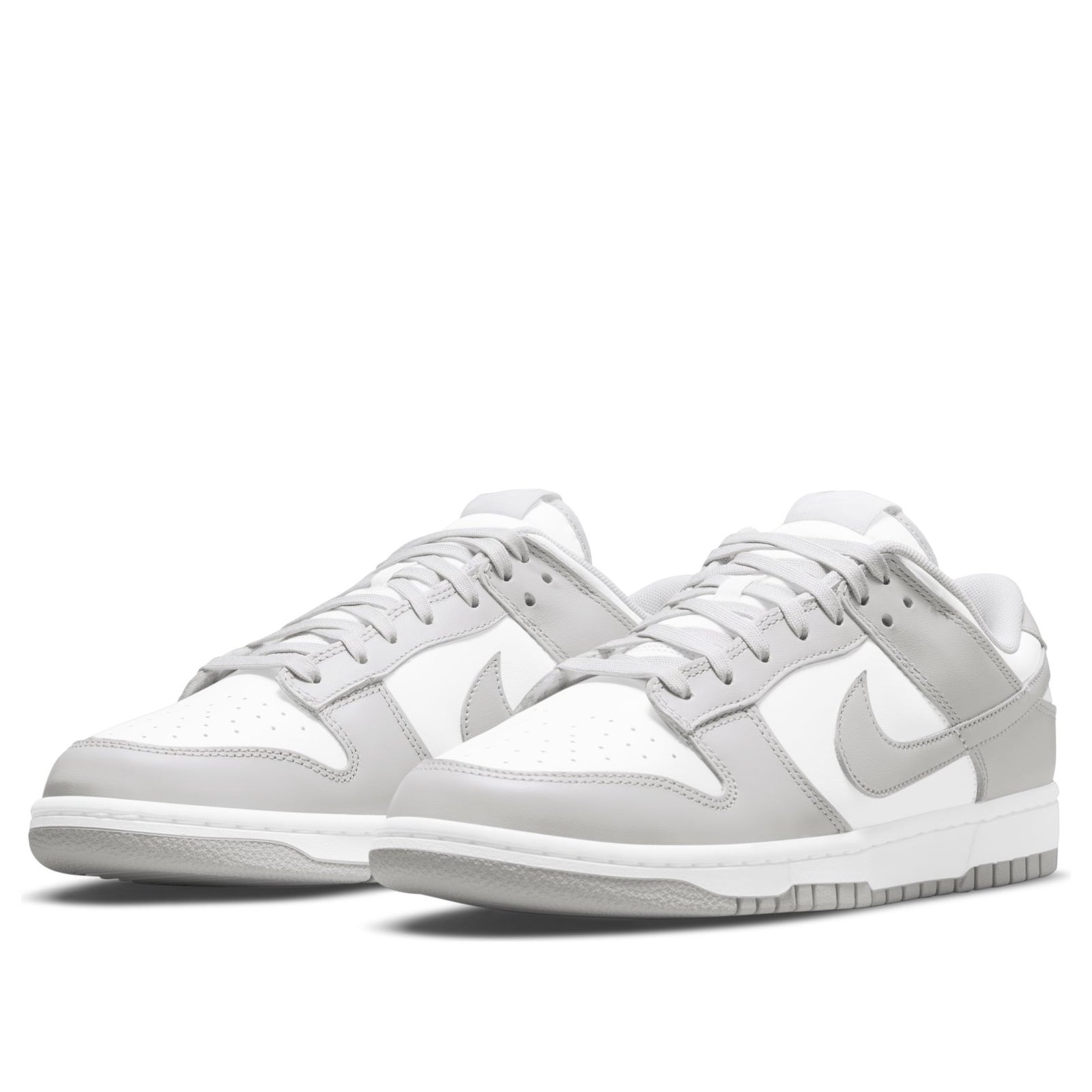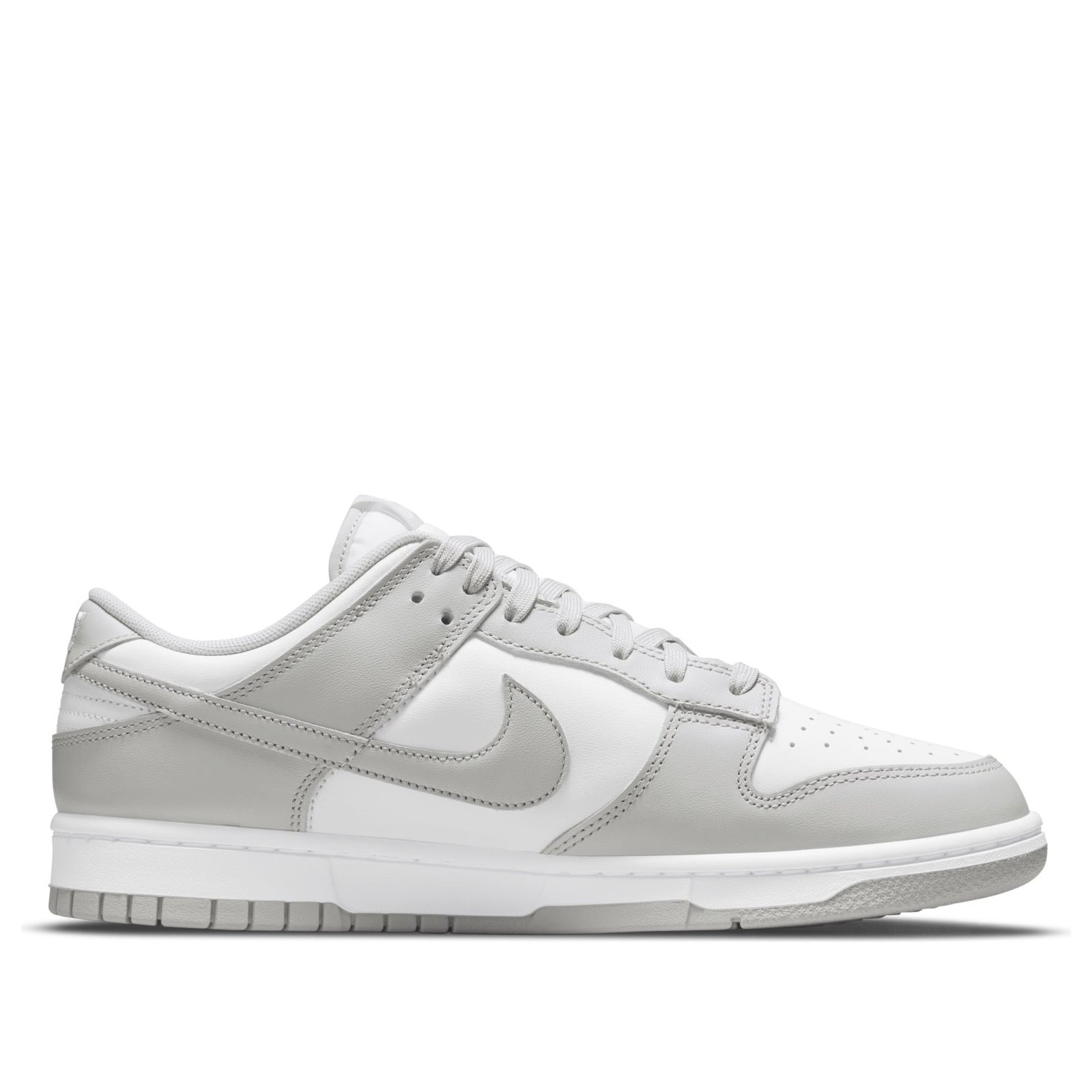 The Nike Dunk Low Grey Fog features a white leather upper with Grey Fog leather overlays and Swooshes. From there, a matching woven tongue label, heel tab, and sole completes the design. The Nike Dunk Low Grey Fog released in September of 2021 and retailed for $100.