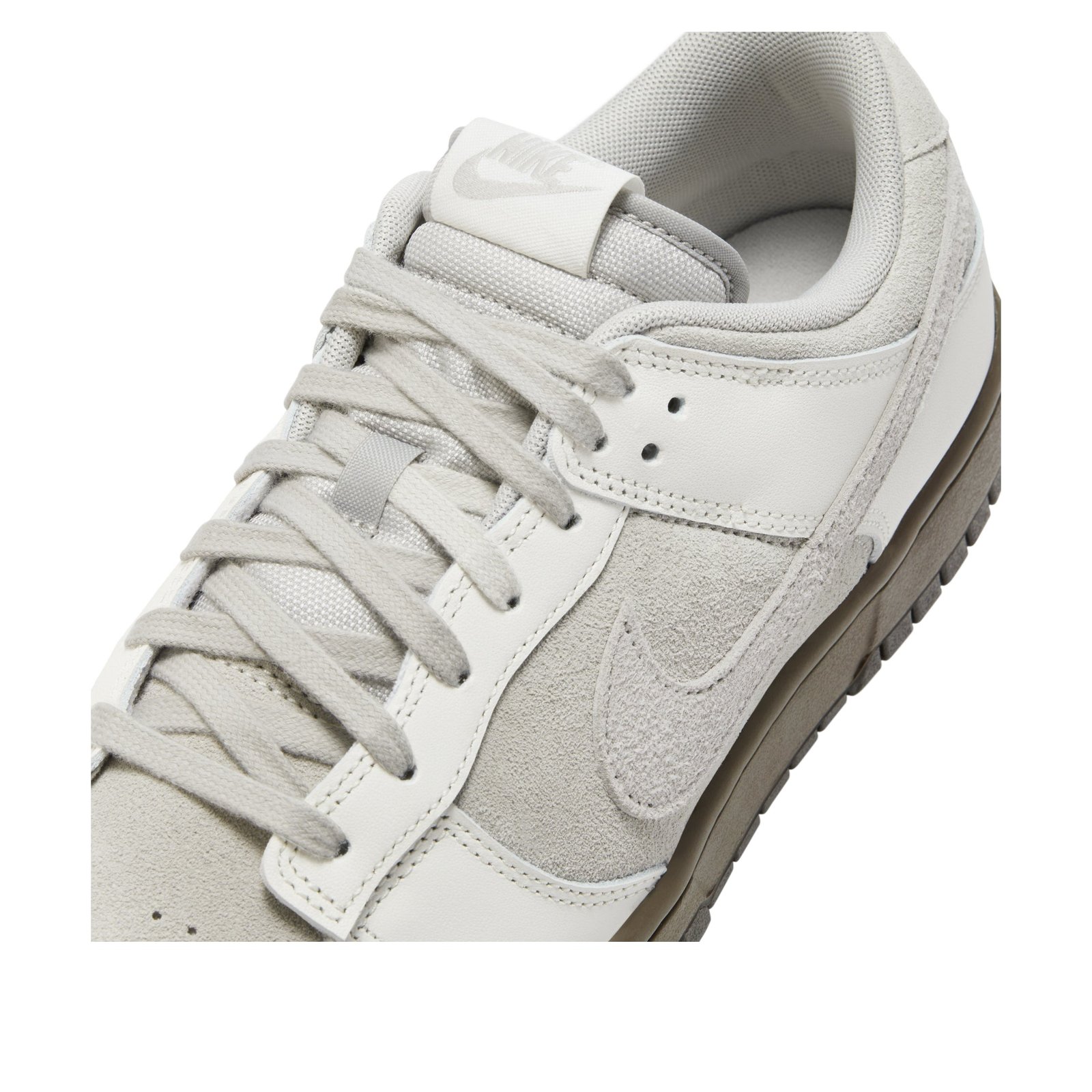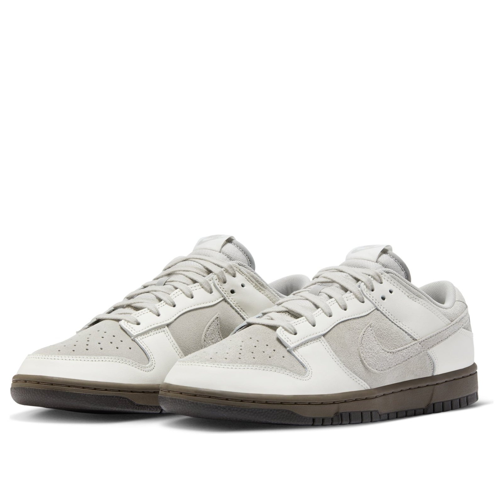 The Nike Dunk Low Ironstone is part of a series of Nike Dunk Low shoes. The Ironstone Nike Dunk Low has an upper that is designed with a mix of suede and leather materials. The colorway features light iron ore, ironstone, and phantom tones and a color-block design on the midsole, with the ironstone color transitioning into a darker brown toward the heel. The outsoles are made from rubber for traction on various surfaces, and the insoles are cushioned with Nikes signature Zoom Air technology. The Nike Dunk Low Ironstone was released on February 21st, 2023 at a retail price of $110.