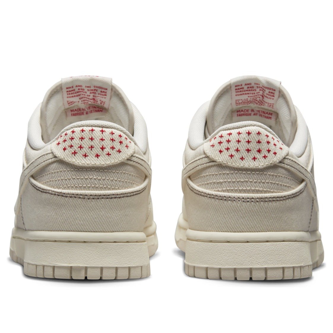 Nike is reintroducing Japanese Sashiko stitching into the popular Nike Dunk Low model, after it was last seen used on the Air Force One silhouette in 2022. The Nike Dunk Low Orewood Brown Sashiko is constructed with a Pale Ivory denim upper that features Orewood Brown contrast stitching throughout. Nike used red Sashiko style stitching across the toe box, heel tab and eyelets. Red Nike branding is placed subtly on the tongue and insoles. The Nike Dunk Low Light Orewood Brown Sashiko released March 9, 2023, with a retail price of $120.