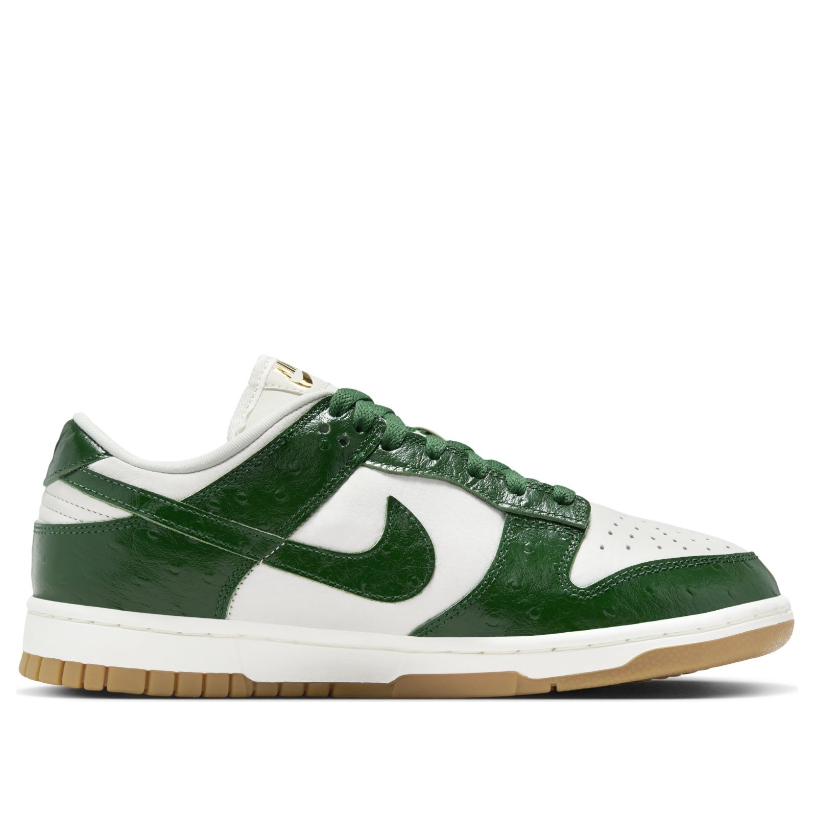 The Nike Dunk Low LX Gorge Green Ostrich (Women’s) adds eye-catching Ostrich-print detailing to the Nike Dunk Low s classic silhouette.This version of the Dunk Low is an “LX” shoe, which means it s “Deluxe” and created with high-quality materials. For example, the white upper is made of premium leather, while the faux ostrich print heel and overlays are also made of leather. The vivid Gorge Green tone of the ostrich print stands out against the white background and gives the sneaker a premium feel. The Swoosh on the side panels, the heel tab, and the insole’s NIKE branding also come in Gorge Green. However, the NIKE lettering and Swoosh on the tongue boast metallic gold. Like other versions of the Dunk Low, the “LX Gorge Green Ostrich (Women s)” features a low-cut design and a durable rubber outsole.Our experts at Newsole like the inclusion of Gorge Green laces that tonally match the shiny overlays. The women s size Nike Dunk Low LX Gorge Green Ostrich (Women’s) was released on February 17th, 2024, and retailed at $135.