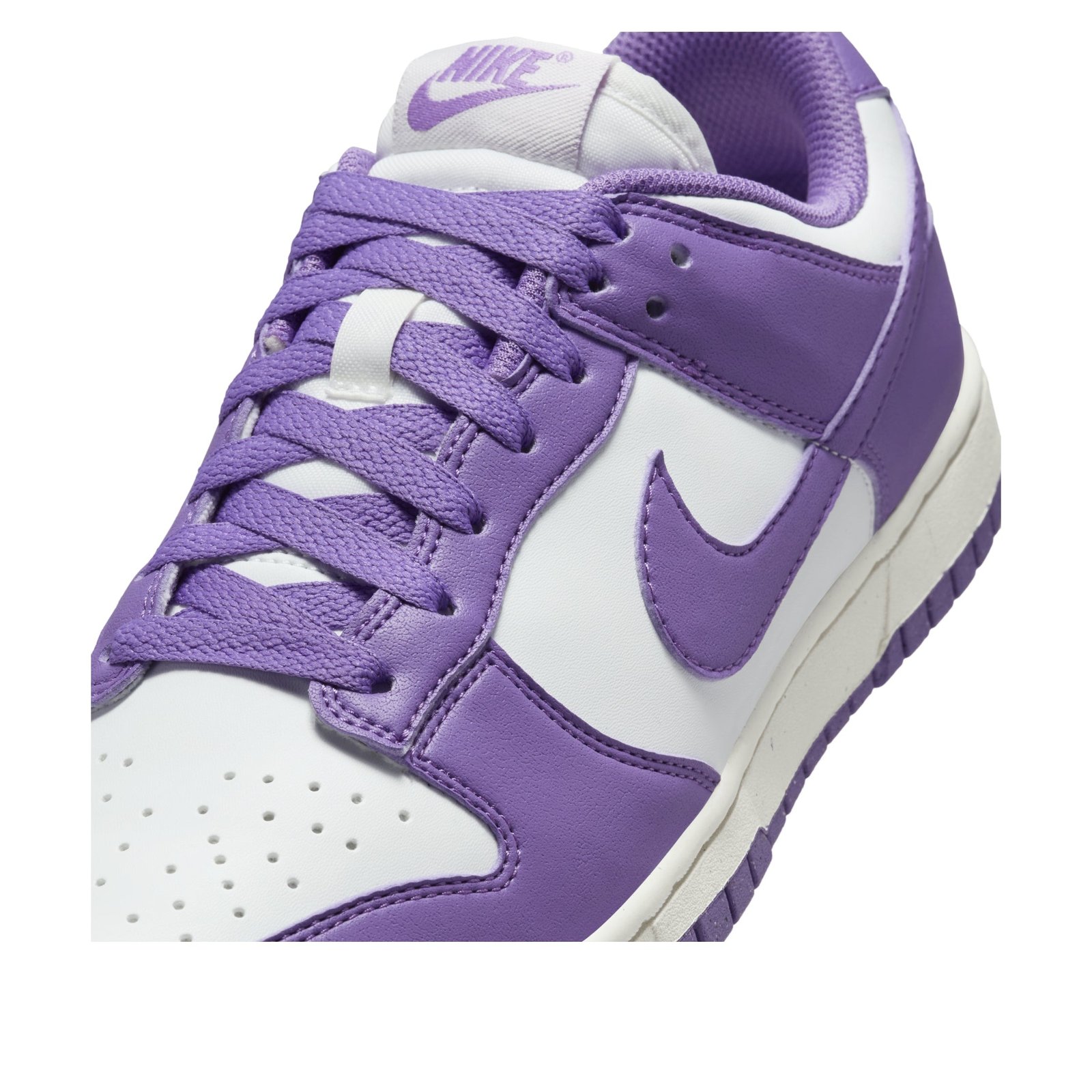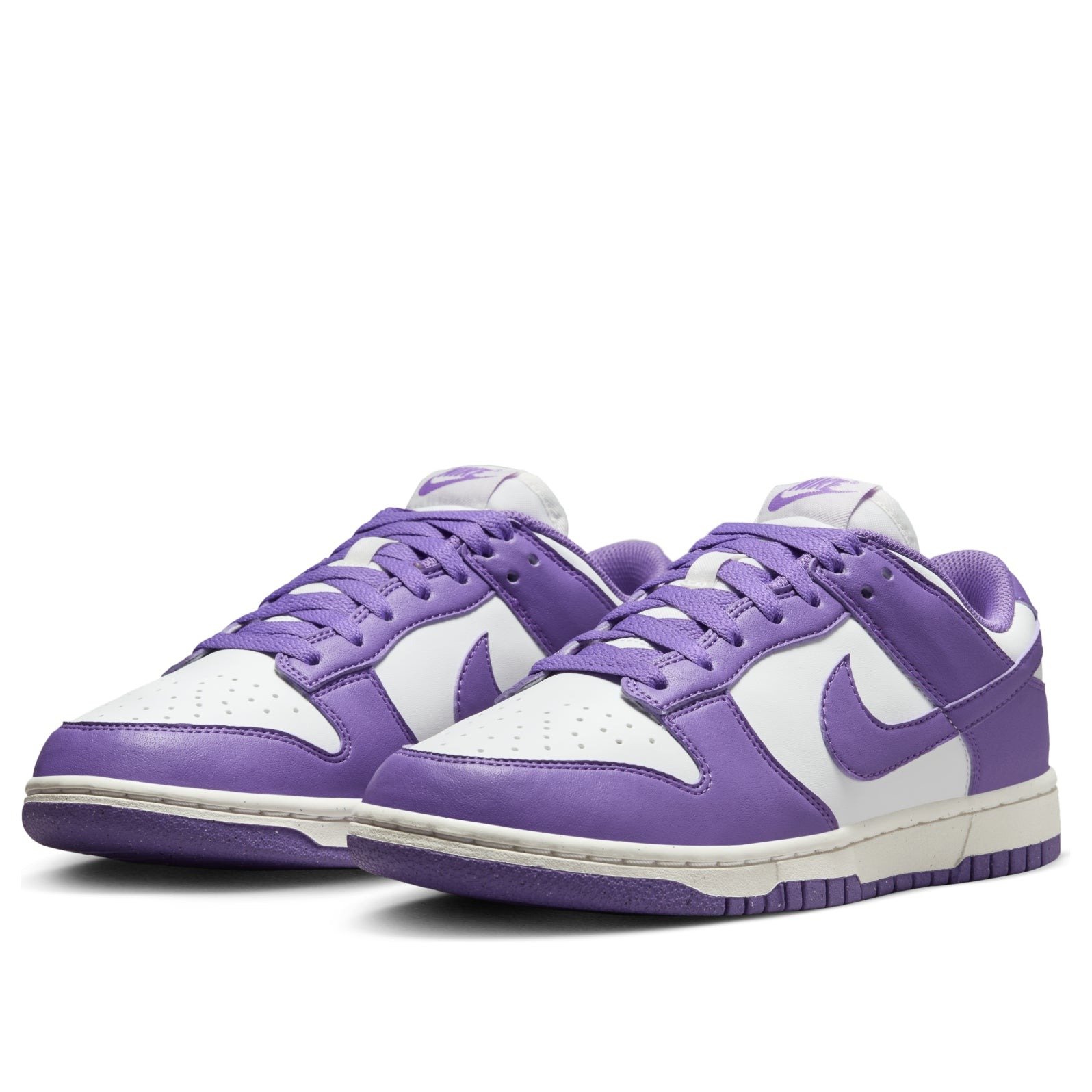 The Nike Dunk Low Next Nature Black Raspberry (Women’s) is a shoe made in women s sizes that appears in a bold colorway. The women’s Black Rasperry Nike Dunk Low Next Nature has a smooth Summit White leather upper as its base. This color forms the sides, the perforated toe box, and the ankle area. Slightly shiny Black Raspberry purple overlays form the toe cap, eyestays, ankle strap, and heel, as well as the Nike Swooshes that adorn the sides. The heel collar contains an embroidered Nike brand name, while the tongue has a Nike logo patch. The shoe has a white midsole and Black Raspberry rubber outsole.What we like most about this sneaker is the lightweight foam midsole, which provides comfort and responsiveness. The Nike Dunk Low Next Nature Black Raspberry (Women’s) was first released on August 8, 2024, for a retail price of $125.