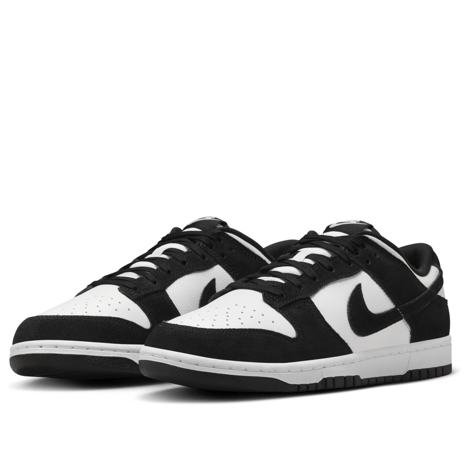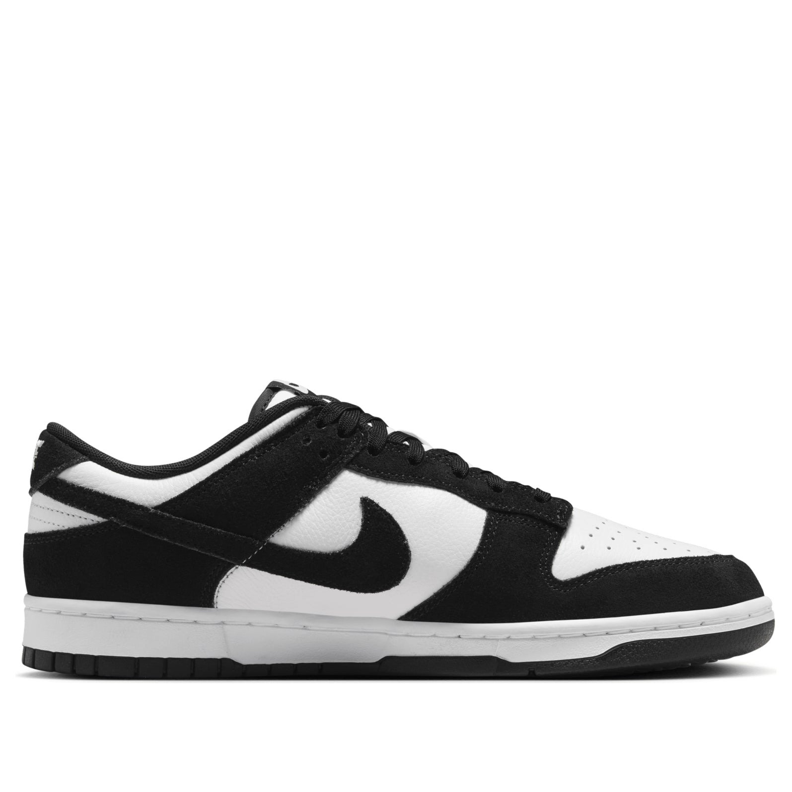 As classic as you can get, the Nike Dunk Low Retro SE Suede Panda is a durable and always-on shoe ready to be taken out regardless of the occasion.These black and white low-rise basketball-inspired shoes have stood the test of time with Nike fans and once again deliver the goods in stylish suede and leather textiles. The upper colorways are a bold contrast of black and white, hence the Panda name. Foam midsoles offer lightweight and highly responsive cushioning for extended wear. The rubber outsole provides durable traction for quick responses when you need to stay light on your feet. The padded collar adds extra comfort, and the Nike Swoosh sits on the outside of the shoes while the tongue boasts the Nike name.Where will you take your favorite Dunk Low Retros? We love the bold contrast of this classic sneaker cut, making it one of the most contemporary pairs of Nike sneakers for everyday use. The Nike Dunk Low Retro SE Suede Panda was released on 12 July 2024, priced at $125.