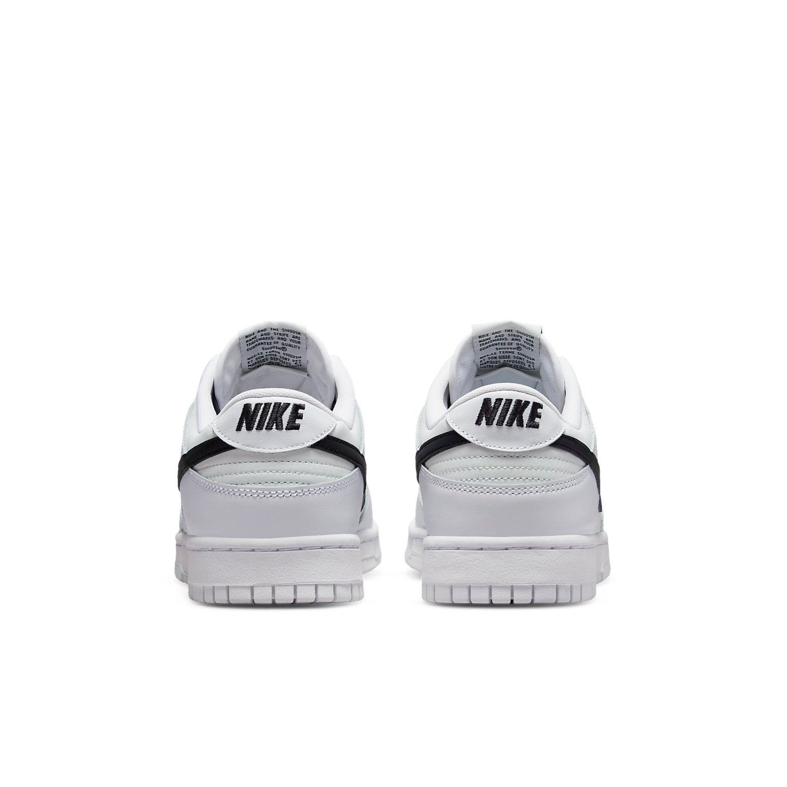 The Nike Dunk Low Reverse Panda features the Nike Swoosh logo in black on the tongue and also on the heel padding behind the ankle.The Nike Dunk Low Reverse Panda has a clean white color throughout, including the sole, with contrasting touches of black. The shoe also features a lace-up closure style with black laces. The Nike Swoosh is found on both sides, also in black, and these meet behind the ankle and below the white heel padding.The Nike Dunk Low Reverse Panda first debuted in Asia in June, 2022, and then in the UK and Europe in July of 2022 at a retail price of $100.