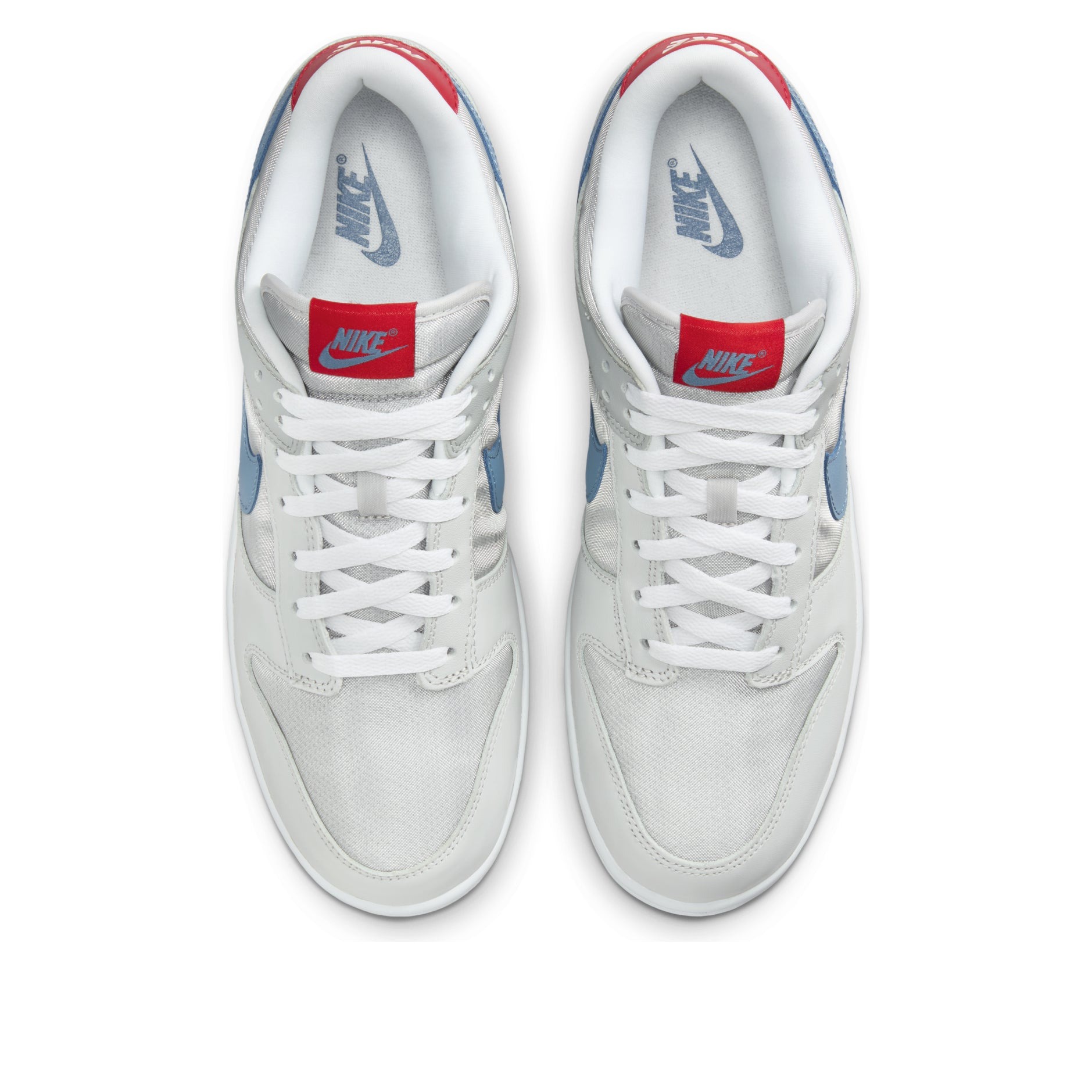 The Nike Dunk Low Silver Surfer (2024) reintroduces the Marvel-inspired sneaker from 2004 that drew inspiration from the metallic silver character who skates through the universe on a surfboard.With color-blocking that s nearly identical to the original, the Silver Surfer (2024) Nike Dunk Low boasts Neutral Grey, Metallic Silver, Aegean Storm, Flat Silver, and Gym Red. The upper is crafted from mesh and leather in Silver, which allows the Aegean Storm and Gym Red accents to pop. For example, the leather Swoosh logo and the ” NIKE” lettering on the tongue tag come in Aegean Storm. However, the leather heel tab and the woven tongue tag display Gym Red.Our Newsole experts like how closely the relaunch matches the OG version. For example, the 2024 shoe even displays a motif of the Silver Surfer on the insole. The Nike Dunk Low Silver Surfer (2024) was released on September 5, 2024, and sold for $135.