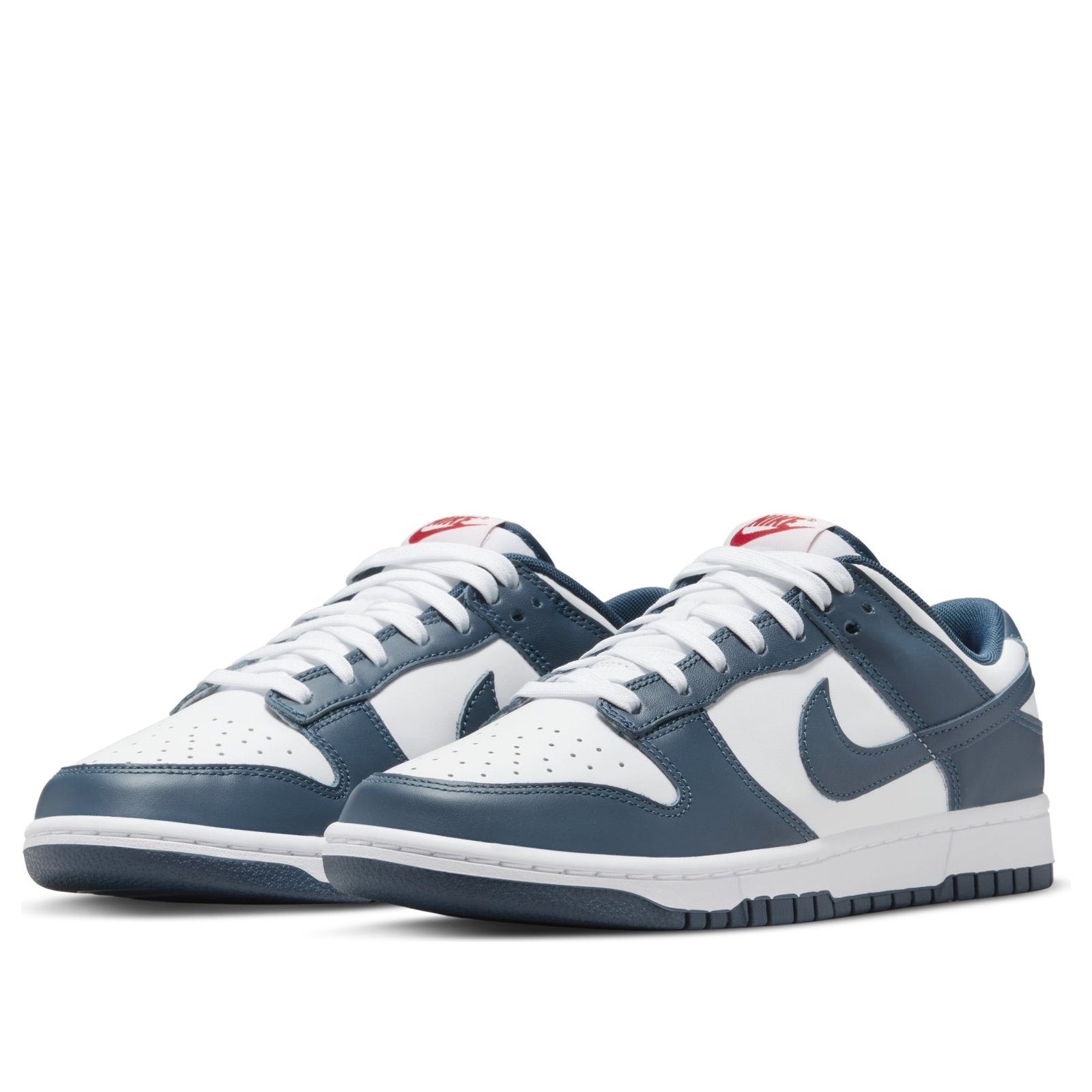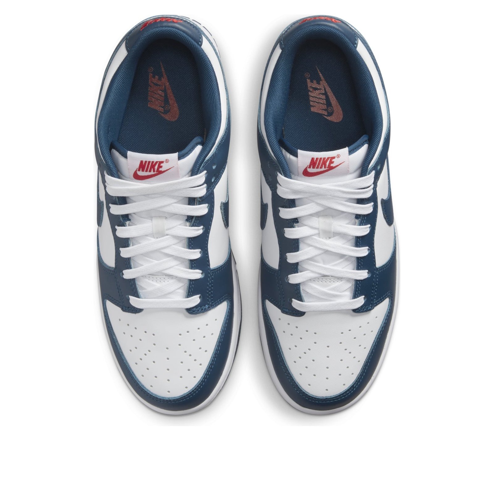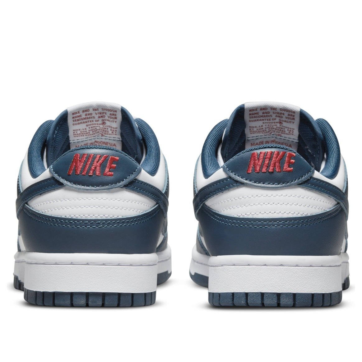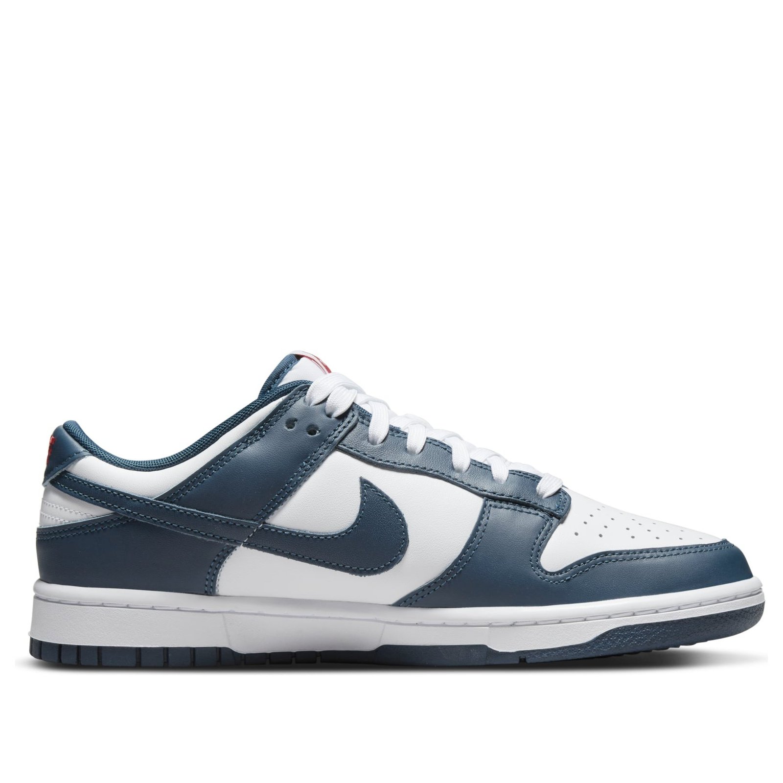 The Nike Dunk Low Valerian Blue arrives in a smooth white leather construction with deep Valerian Blue overlays and Swooshes. Hits of red on the woven tongue label and heel embroidery add a subtle contrast. At the base, a matching white and blue Air sole completes the design.The Nike Dunk Low Valerian Blue released in May of 2022 and retailed for $100.