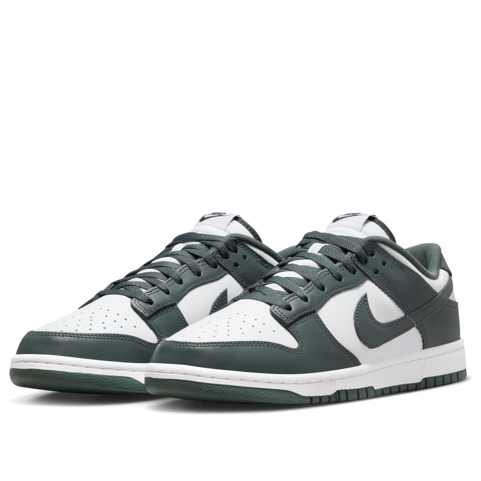 The Nike Dunk Low Vintage Green is a leather low-top basketball shoe featuring an upper done in Vintage Green and White. The tip, lace panel, heel overlays, Nike Swoosh, and heel tab are done in Vintage Green s deep olive hue, accented by underlays in crisp White. The uniform bi-color palette extends to the Nike branding on the tongue and heel tab, while the Vintage Green midsole completes the aesthetic.American sportswear and sneaker brand Nike has always had a vision for the endless possibilities of athletic shoes, and the Dunk was conceptualized for university sports in the 1980s. Its fabrication was designed to lend itself to the bicolor palettes of college sports, and in the decades following the shoe has become a cult classic for its color variations and adaptability.In our opinion, the best feature of the Dunk Low is its Vintage Green overlays, which offer a neutral yet uncommon hue. The Nike Dunk Low Vintage Green released on October 14, 2024, and retailed for $115.
