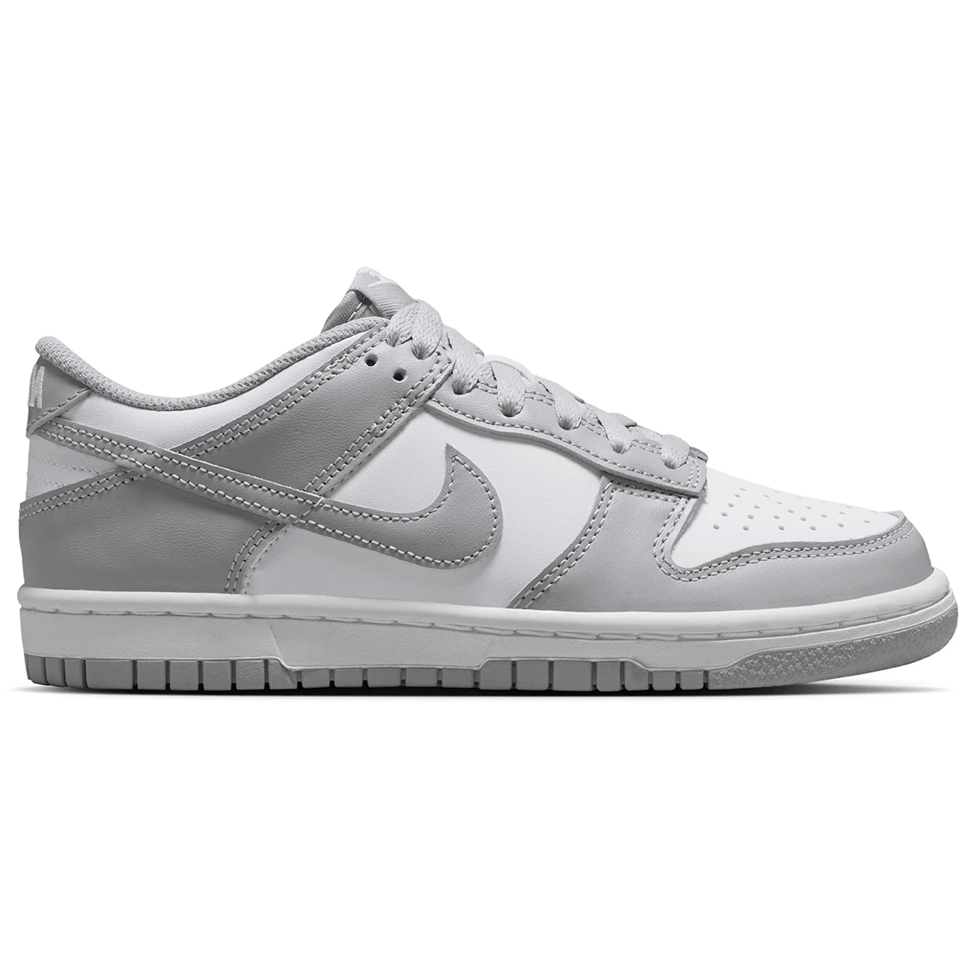 The Nike Dunk Low White Light Smoke Grey (GS) features a White/White/Light Smoke Grey colorway. This Nike Dunk Low was first released for $90 on April 01, 2025.
