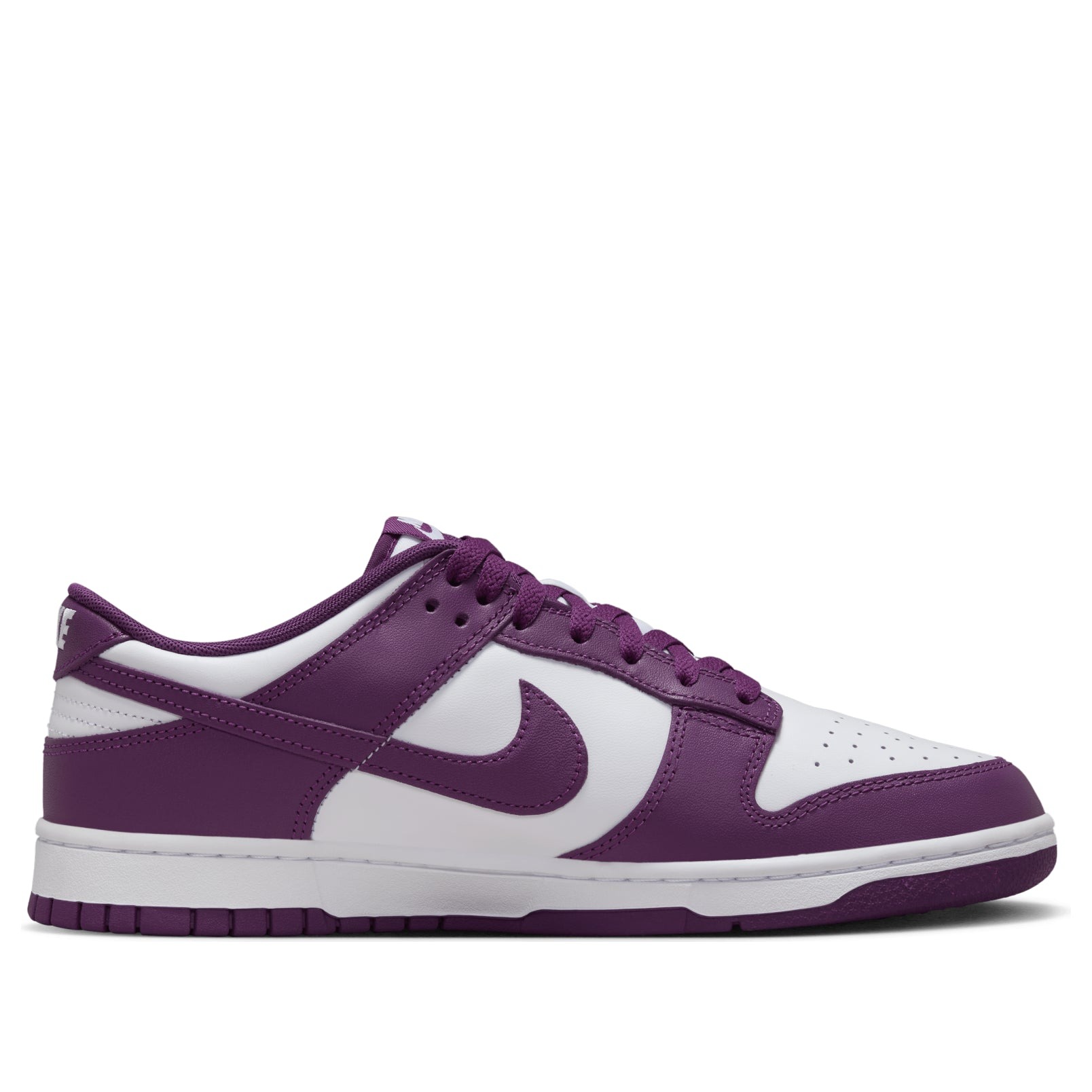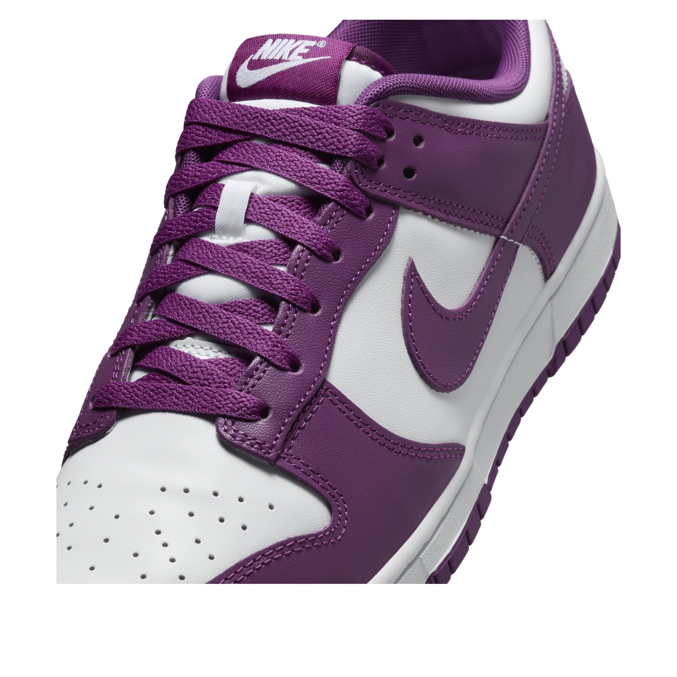 The Nike Dunk Low White Viotech (DV0833-107) refreshes a beloved court classic with crisp color-blocking and standout pops of Viotech purple. A smooth white leather base sets the stage for saturated violet hits at the Swoosh, heel tab, and tongue branding, delivering a clean yet vivid look that pairs easily with everything from laid-back denim to tailored streetwear. The low-cut silhouette keeps things sleek and wearable, while a padded collar and breathable perforated toe box add comfort for all-day moves. Finished with heritage details and a throwback shape, this pair nods to the Dunk s roots while embracing a modern palette that commands attention without trying too hard.Underfoot, a sturdy rubber cupsole and classic pivot-circle traction provide reliable grip and everyday durability, making these sneakers as functional as they are eye-catching. A cushioned insole softens each step, and the versatile White/Viotech colorway looks sharp year-round, whether you re dressing up a minimal fit or adding a punch of color to your rotation. Released on July 19, 2024, this edition captures the timeless appeal of the Dunk with a fresh twist that feels instantly wearable. For collectors, stylists, and daily wearers alike, the Nike Dunk Low White Viotech brings elevated materials, a refined finish, and unmistakable Nike heritage in a single, easy-to-style package.Our team loves this product because it blends everyday comfort with a striking White/Viotech palette, making it a go-to choice for effortless styling and long-term wear.