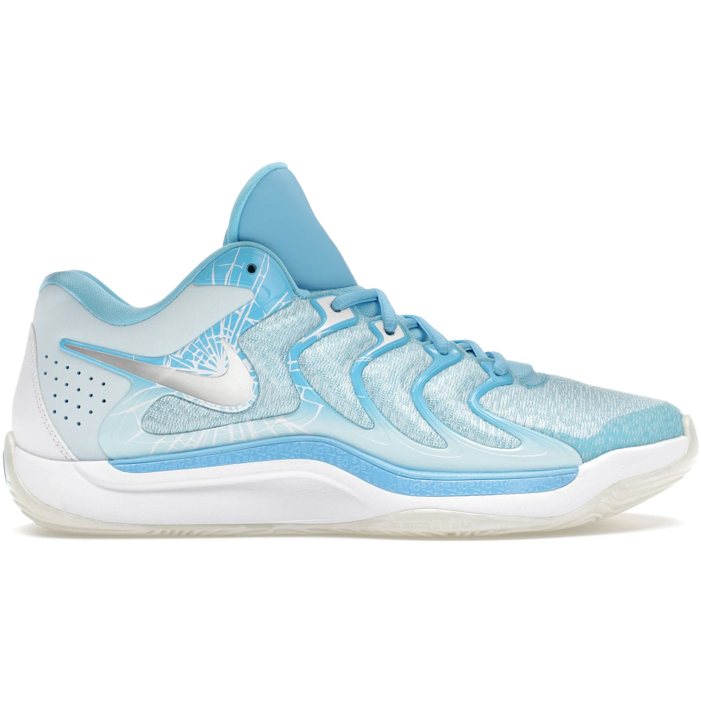 The Nike KD 17 Christmas dresses NBA player Kevin Durant’s 17th signature basketball shoe in an icy colorway of Glacier Blue, Aquarius Blue, white, and Metallic Silver in time for Christmas 2024.Nike Air units in the heel and a Zoom Air unit in the forefoot deliver responsive cushioning that supports quick, decisive movements. In addition, the rubber outsole boasts contoured grooves that look like a topographical map or a fingerprint. This traction pattern provides an extra grippy feel and works with the cushioning systems. The upper is dressed in Aquarius Blue and Glacier Blue with tonal overlays that display a cracked ice pattern. Although hits of Aquarius Blue appear on the midsole, white is the dominant color.Our experts at Newsole like that Kevin Durant s Easy Money logo appears on the elongated tongue in eye-catching Metallic Silver. The Nike KD 17 Christmas was released on December 26, 2024, and retailed for $150.