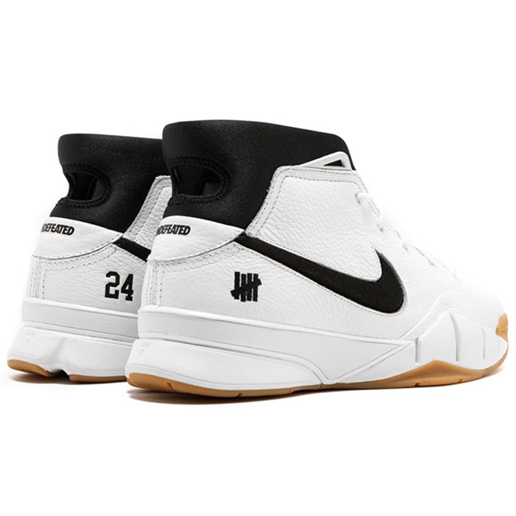 The Nike Kobe 1 Protro Undefeated White is an addition to the Kobe line of basketball shoes. It is a collaboration between Nike and Undefeated, the Los Angeles-based streetwear brand.The Kobe 1 Protro sneaker has an upper that is made of a combination of patent leather and textile. The Undefeated logo is embossed on the heel tab and the Nike Swooshes are visible on both sides. The midsole boosts a Zoom Air unit to provide cushioning and support for quick movements on the court. The shoe also has a sturdy rubber outsole for traction and grip.We believe the notable feature of the Nike Kobe 1 Protro Undefeated White is its clean white colorway. The white upper is made of a mixture of leather, mesh, and synthetic materials, providing a sleek and premium look. The Kobe 1 Protro Undefeated in White was released on February 15th, 2018, at a retail price of $180.