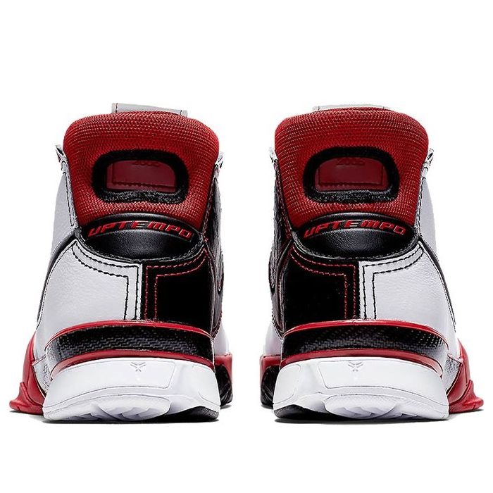 The Nike Kobe 1 Protro White Black Red (All-Star) comes in a white and black-varsity red color palette.The White Black Red Nike Kobe 1 Protro (All-Star) upper combines leather and synthetic materials to offer a balance of durability and flexibility. Equipped with Zoom Air cushioning technology, the midsole delivers responsiveness and effective shock absorption. The rubber outsole features a multidirectional tread pattern, ensuring reliable traction and stability. Branding details include the iconic Nike Swoosh on the lateral sides, Kobe Bryant’s logo on the tongue, and an “UPTEMPO” inscription on the heel.The Nike Kobe 1 Protro White Black Red (All-Star) standout feature is its vibrant color combination of white, black, and red hues, creating a dynamic and timeless aesthetic that pays homage to the legacy of Kobe Bryant while also providing a contemporary look. The Nike Kobe 1 Protro White Black Red (All-Star) was released on August 2, 2018, and sold for a retail price of $175.