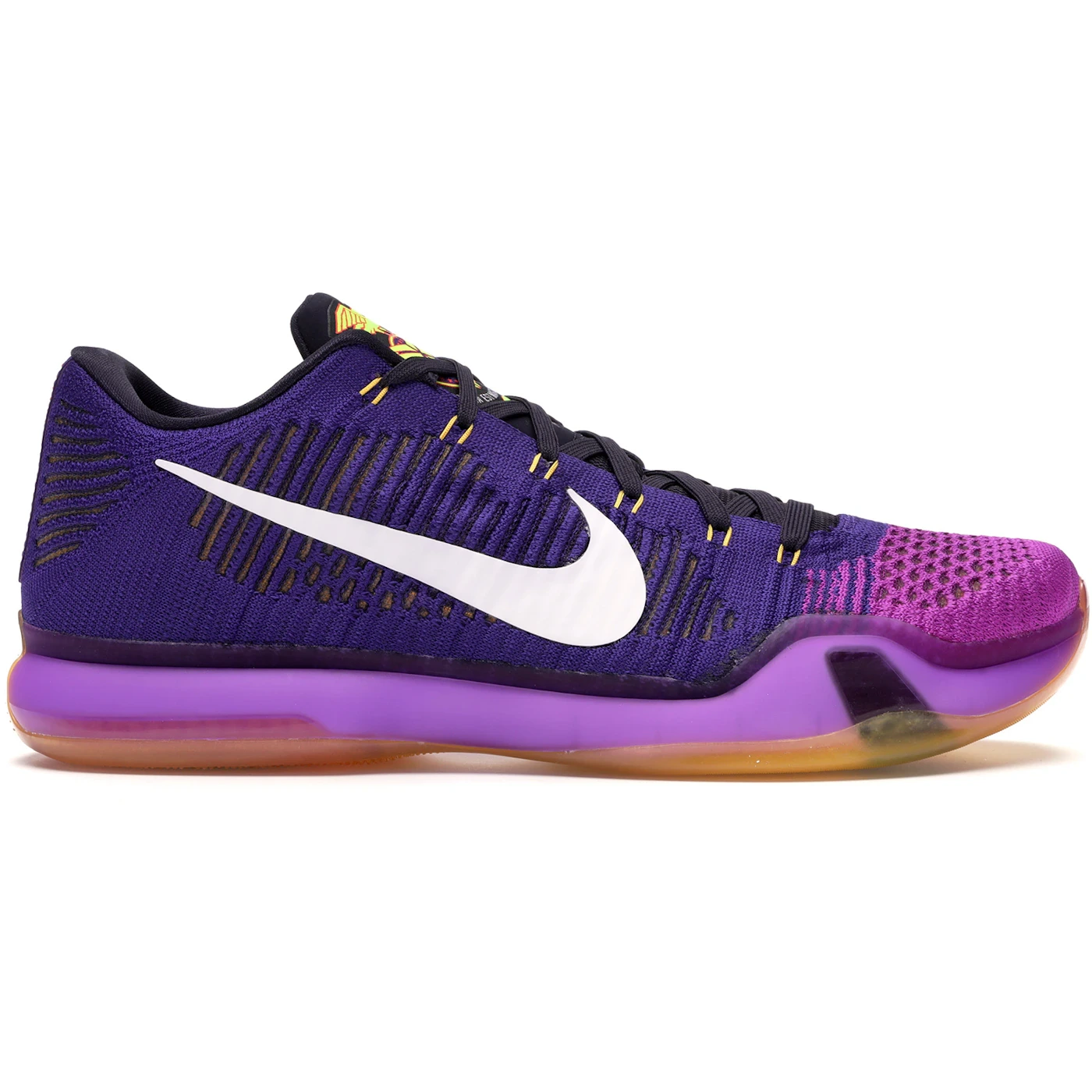 The Nike Kobe 10 Elite Low Opening Night, released on October 30, 2015, at $200, is a masterpiece of basketball footwear. It embodies the spirit of Kobe Bryant, with a court purple, white, vivid purple, cave purple, and hyper orange colorway that captures the energy of an opening night game. Nike’s dedication to innovation is evident in the Kobe 10 Elite Low Opening Night. The sneaker features cutting-edge technology, including Flyknit construction and Lunarlon cushioning, offering both lightweight comfort and responsive support. It’s a shoe that meets the demands of high-level basketball while maintaining a strong sense of style. The Nike Kobe 10 Elite Low Opening Night is a tribute to one of basketball’s greatest legends. Its unique colorway and advanced features make it a standout addition to any sneaker collection, embodying the legacy of Kobe Bryant in every stitch.