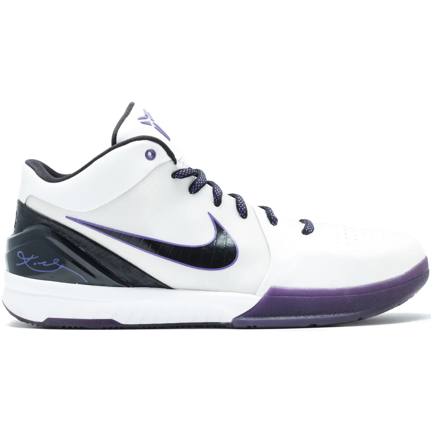The Nike Kobe 4 Inline features a White/Black-Varsity Purple colorway. This Nike Kobe 4 was first released for $120 on January 01, 2009.