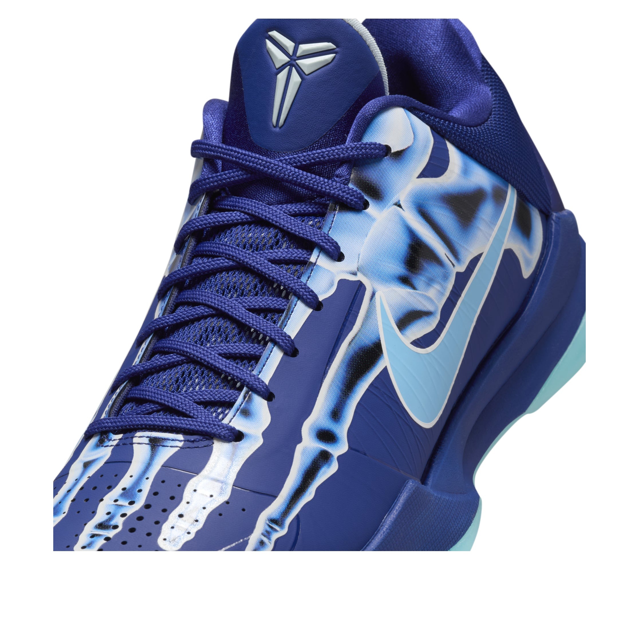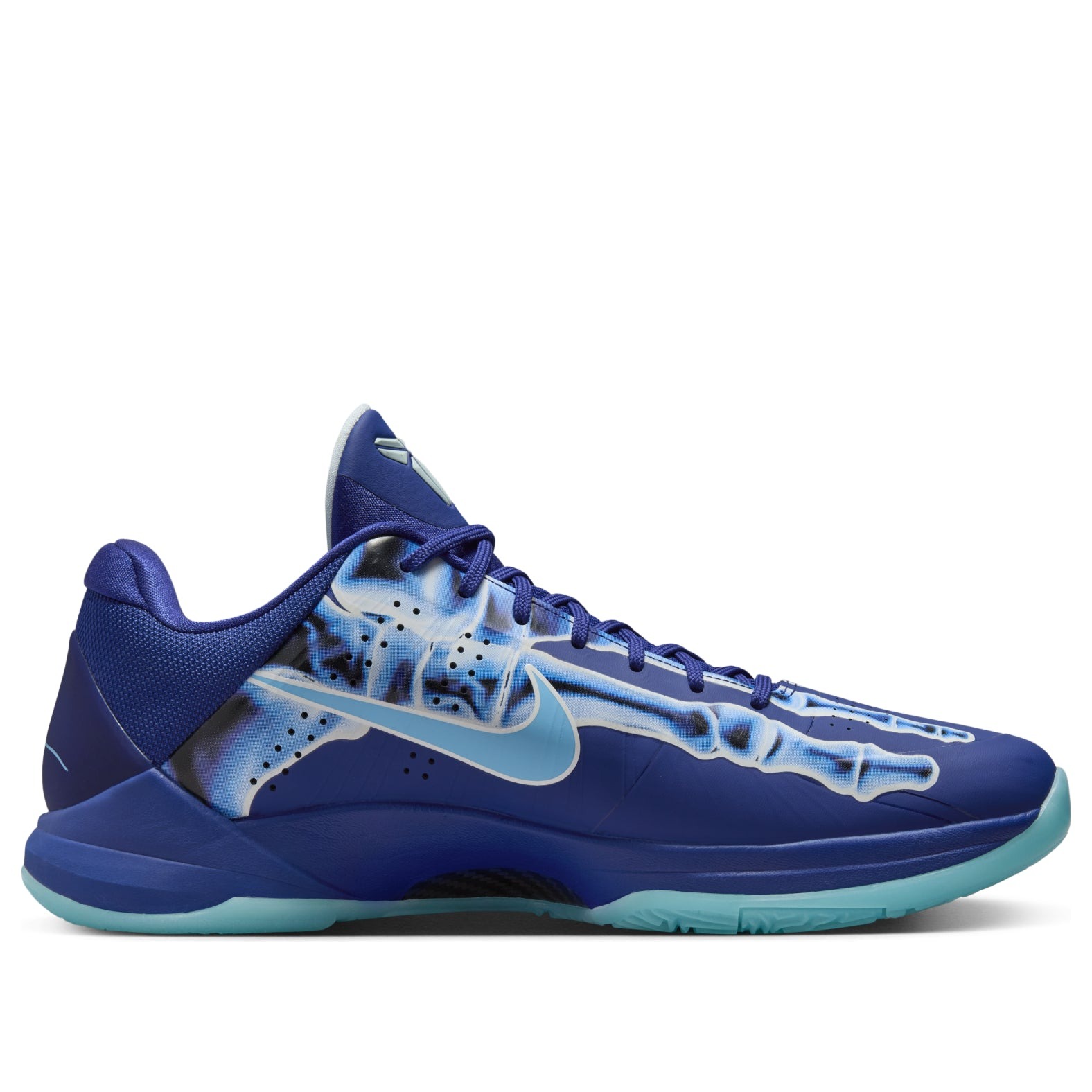 The Nike Kobe 5 Protro X-Ray is a vibrant homage to Kobe Bryant’s legendary career, taking inspiration from the iconic X-ray T-shirt that featured his hand adorned with five championship rings. Reimagining this concept, the X-ray design is applied to the upper of the Kobe 5 with glow in the dark elements, depicting an X-ray of a foot. Done in deep royal blue, baltic blue, and glacier blue, this bold sneaker also features glow-in-the-dark outsoles, adding an extra layer of flair to an already striking silhouette. As part of the Protro series, this Kobe 5 combines modern performance technology with the original model’s design, making it a favorite among basketball players and sneakerheads alike. Known for its sleek, low-profile build, the Kobe 5 has been a go-to for athletes seeking speed, agility, and responsiveness. This latest iteration takes the iconic silhouette and elevates it with a design that truly celebrates the Mamba Mentality and Kobe s enduring influence on the game. Released on October 17, 2024, the Nike Kobe 5 Protro X-Ray retailed for $190. This special edition release, with its unique X-ray graphic, glow-in-the-dark elements, and tribute to Kobe’s incredible career, is a must-have for fans of Kobe Bryant and those who appreciate bold, innovative designs.
