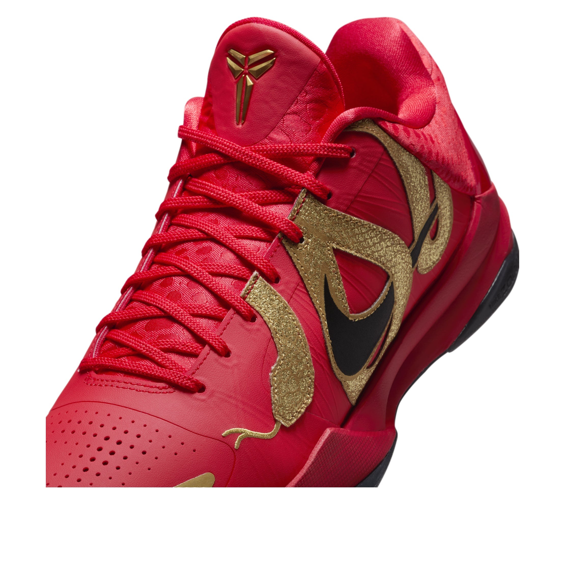 The Nike Kobe 5 Protro Year of the Mamba University Red is a vibrant celebration of Kobe Bryant s legacy and the 2025 Lunar New Year. Inspired by the Year of the Snake, this sneaker features a bold university red base with gold details and intricate snake motifs that pay homage to Kobe s “Black Mamba” nickname. A golden snake wraps around the sides, while metallic gold accents highlight the toe box, heel, and tongue logo. The textured snakeskin pattern on the collar gives the sneaker a luxurious edge, complementing the bold design. Black swoosh logos and a durable black rubber outsole ground the shoe with striking contrast, ensuring it s as functional as it is stylish. Packed with Protro performance updates, this iteration stays true to Kobe s ethos of innovation and excellence. Released on January 18, 2025, the Nike Kobe 5 Protro Year of the Mamba University Red retailed for $190. This pair dropped exclusively in China to celebrate Kobe Bryant s enduring impact and the joy and fortune associated with the Lunar New Year.