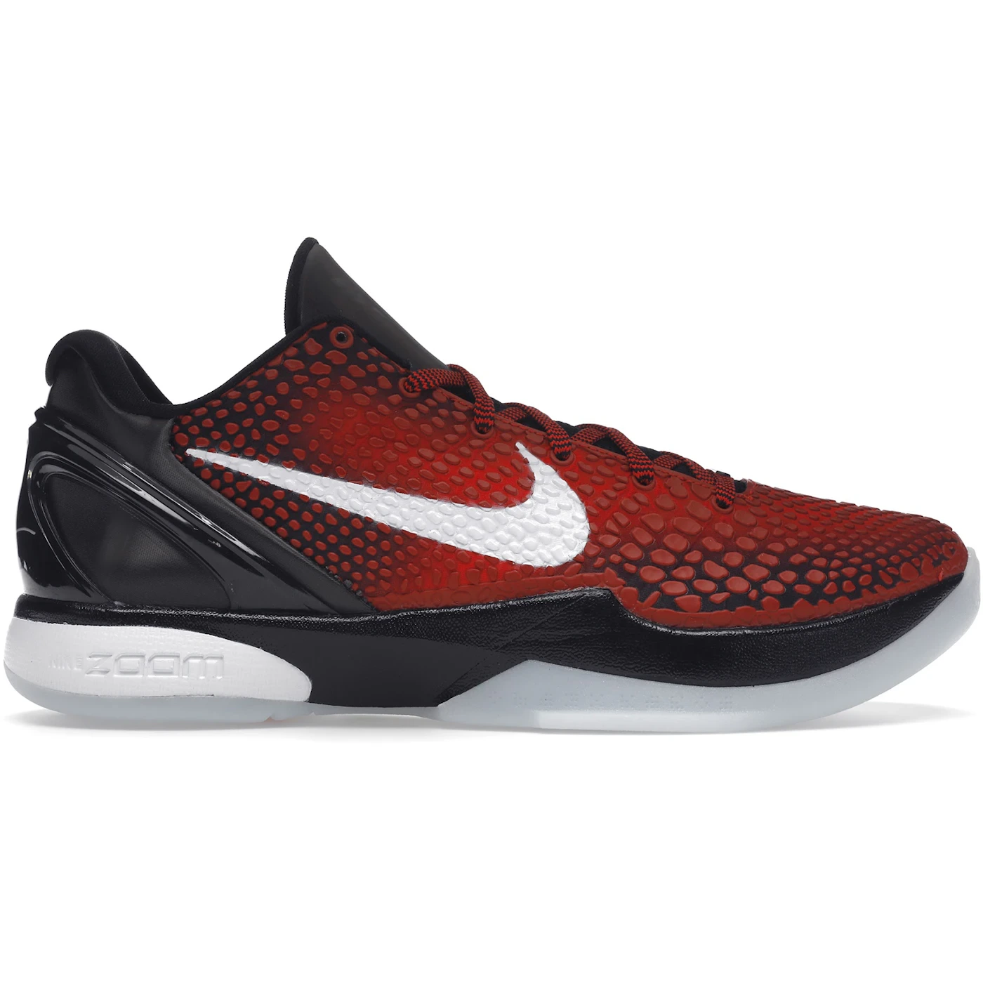 Nike brought back an NBA All-Star classic with the re-release of the Nike Kobe 6 All-Star. The Kobe 6 All-Star originally debuted in the 2011 All-Star Game, where Kobe Bryant took home his fourth All-Star MVP. In the game, Kobe dropped 37 points, grabbed 14 rebounds, and notched a win for the West in a close match-up against LeBron and the East.Like most Kobe Protros, the Kobe 6 Protro All-Star is constructed differently than the 2011 model. Its design is lower, sleeker, and features updated technology for improved on-court performance. A flexible Air Zoom Turbo unit in the midsole and an outsole with scaled-down traction enhance responsiveness and court grip. The upper is composed of a red and black snakeskin-textured material, nodding to Kobe s Black Mamba moniker. A black heel cap donning Kobe s signature wraps up the design.The Nike Kobe 6 Protro All-Star released in March of 2021 and retailed for $180.