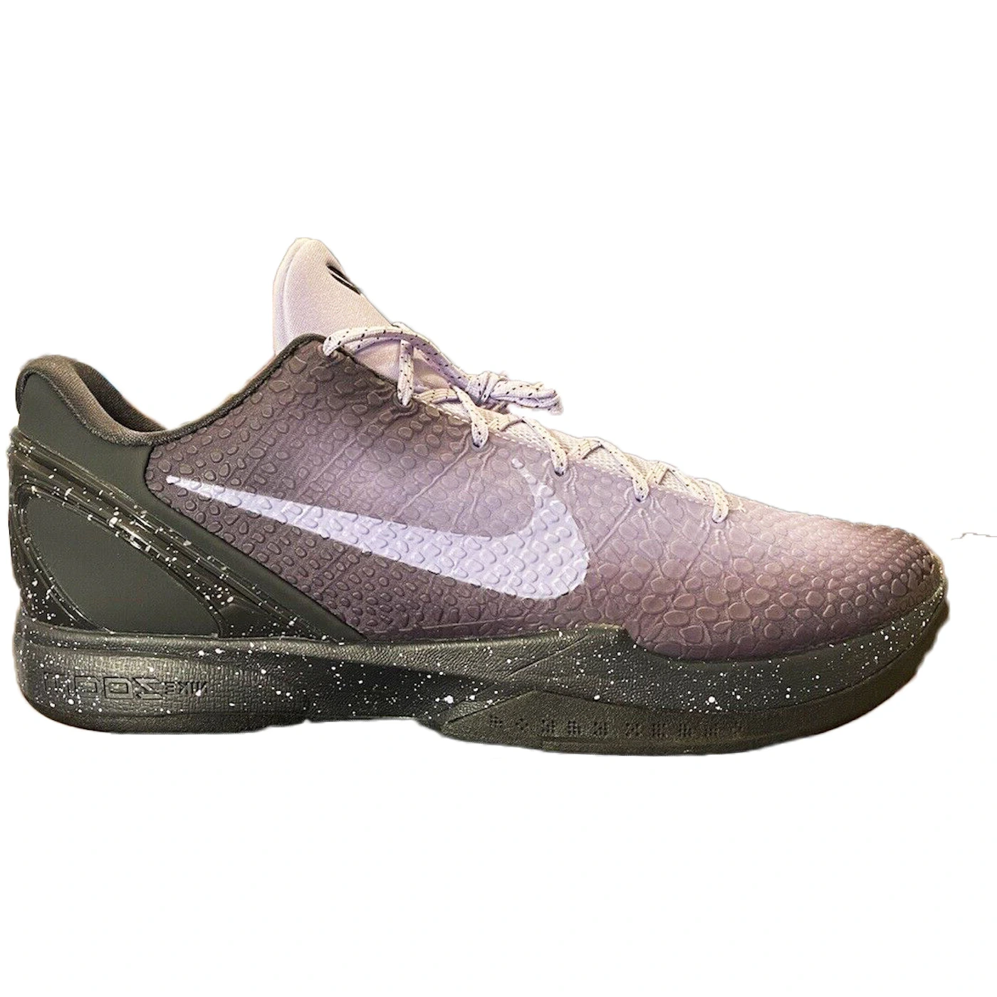 Part of the signature performance retro (Protro) range by world-renowned baller Kobe Bryant, the Nike Kobe 6 Protro EYBL is a sleek, dynamic shoe originally designed for the Elite Youth Basketball League and now available to all fans. With a gradient snakeskin upper that fades from deep purple to ethereal lavender, the EYBL Nike Kobe 6 Protro is a professional shoe designed for both ballers and lifestyle sneaker enthusiasts. The black paint speckles on the heel and midsole give the shoe an other-worldly feel, and the Nike Swoosh sits in light lavender on the sides. The midsole features a TPU cage on the heel with the EYBKL branding and an inner Zoom Turbo Unit. The outsoles are made of rubber for quick turns and cuts. We love these shoes for their exceptional performance and iridescent design, making them highly original. Pink speckled laces add a nice touch. The Nike Kobe 6 Protro EYBL trainers were released on 1 May 2022, priced at $225.