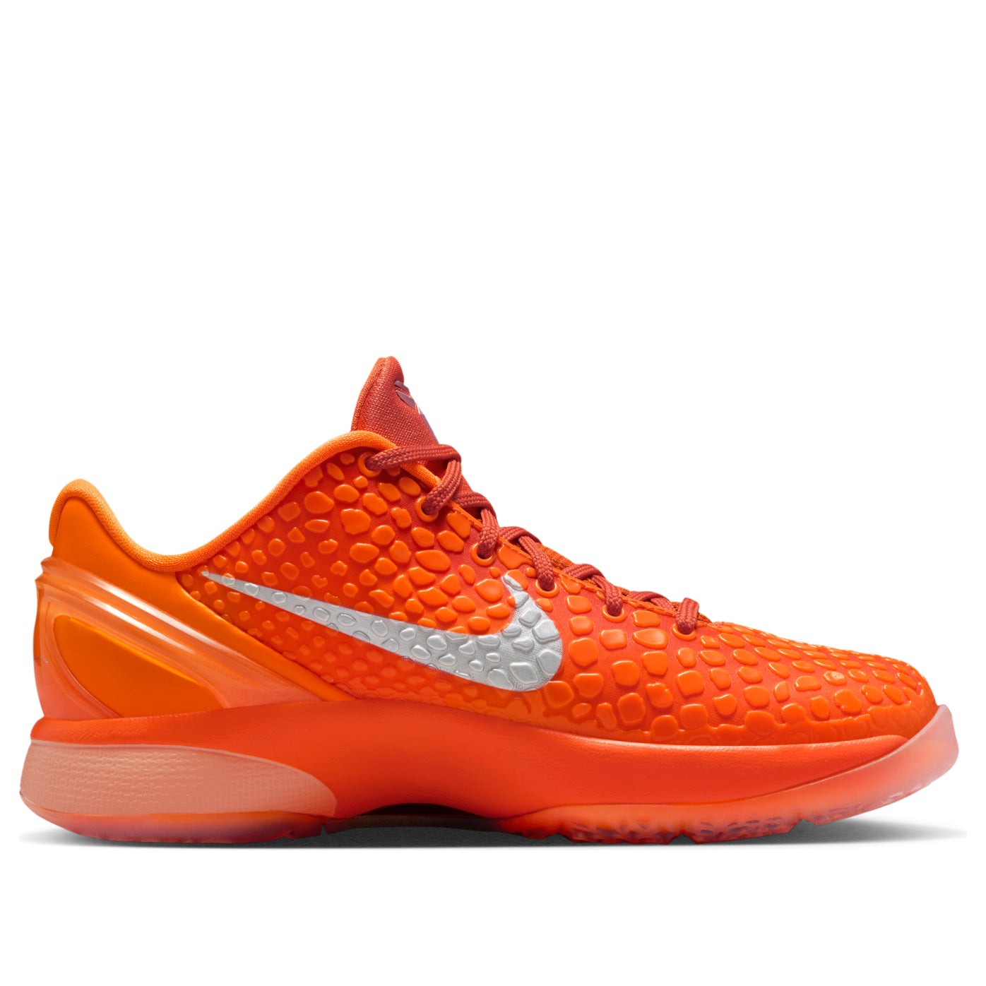 The Nike Kobe 6 Total Orange (GS) features a Total Orange/Metallic Silver/Cosmic Clay colorway. This Nike Kobe 6 was first released for $120 on July 18, 2025.