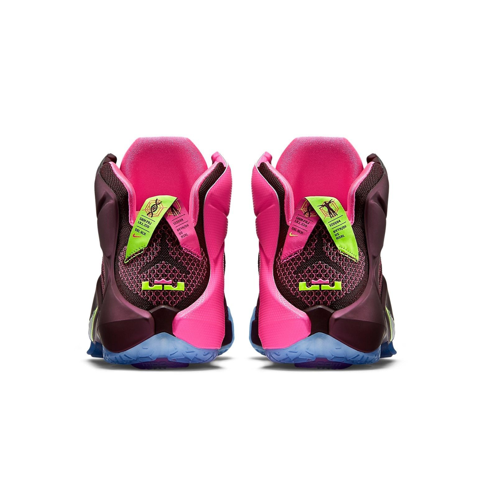 The Nike LeBron 12 Double Helix features a Merlot/Volt/Pink Pow/Metallic Silver colorway. This Nike LeBron 12 was first released for $200 on February 28, 2015.