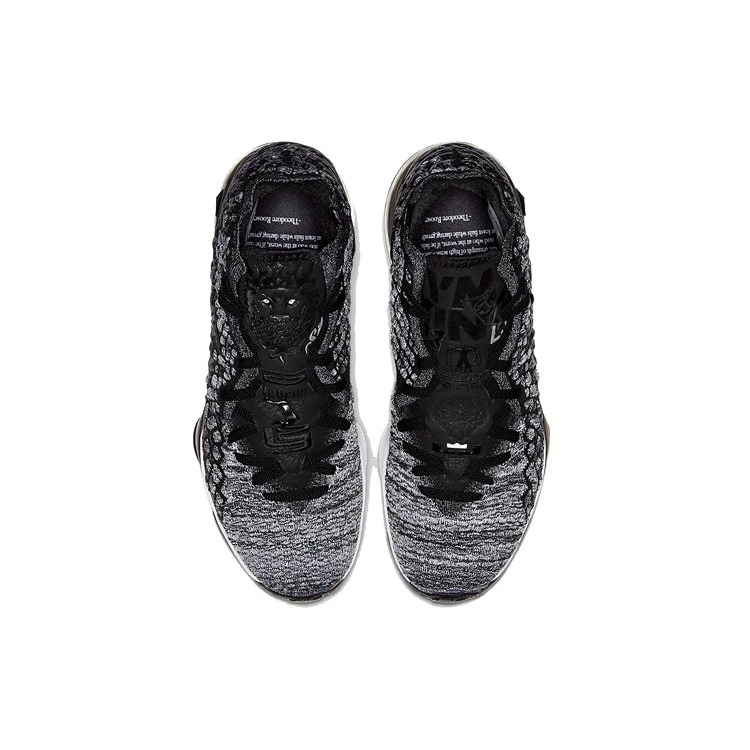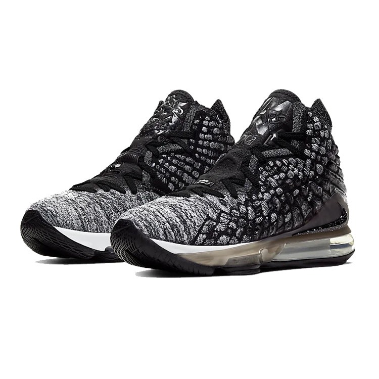 The Nike LeBron 17 Black White was released as part of a continued collaboration between Nike and NBA star LeBron James.This Nike LeBron 17 is made from Knitposite material which is a combination of Flyknit and heat-molded yarns while the outer sole is made from rubber. They have a two-tone colorway of black and white with varying shades that are lighter at the front and darker towards the back. The shoes also have a molded lion emblem on the tongue and have the Nike Swoosh on the outside side resting above the mid sole. The Nike LeBron 17 Black White were released on October 3rd 2019 at the retail price of $200.