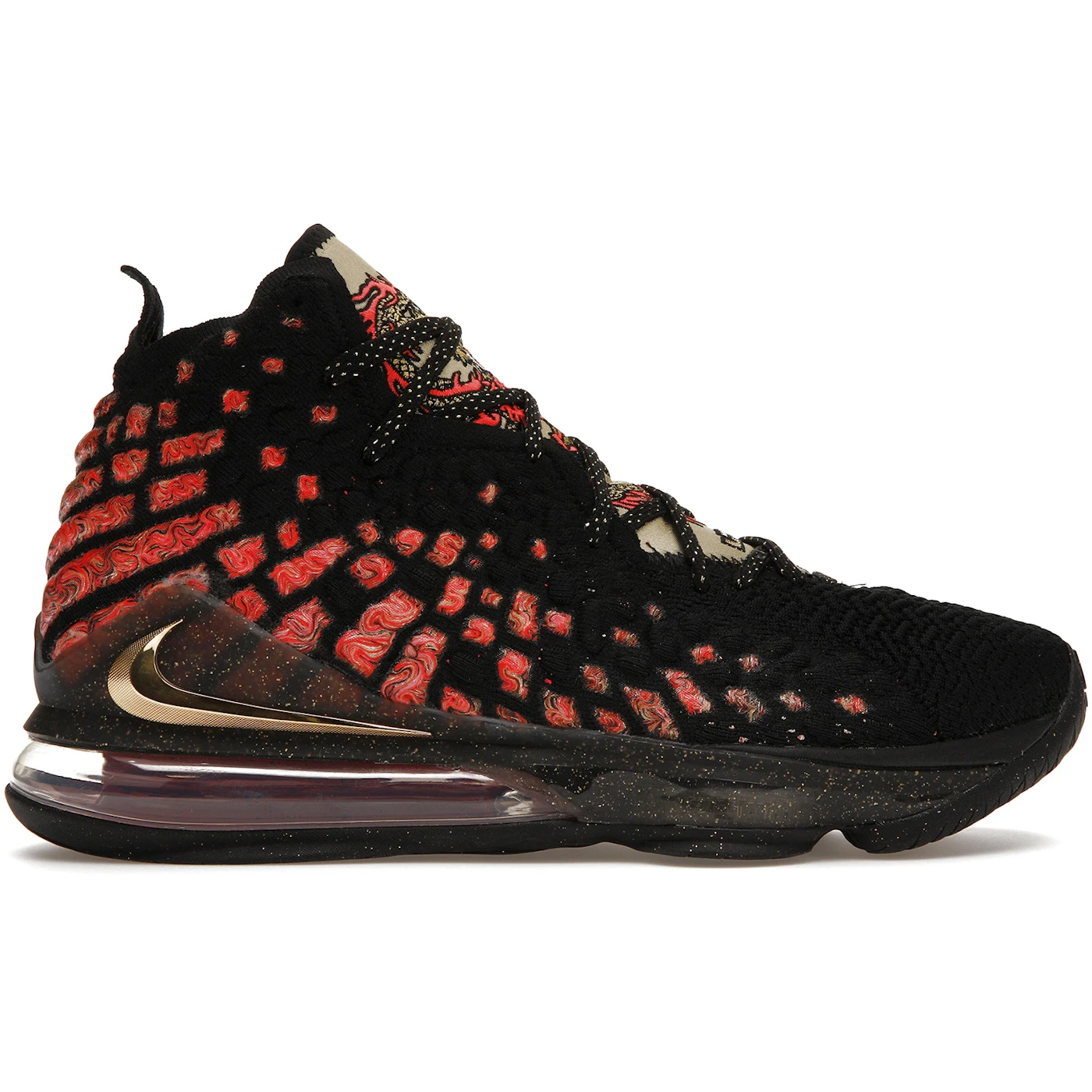 The Nike LeBron 17 Courage features a Black/Gold-Red colorway. This Nike LeBron 17 was first released for $225 on June 27, 2020.