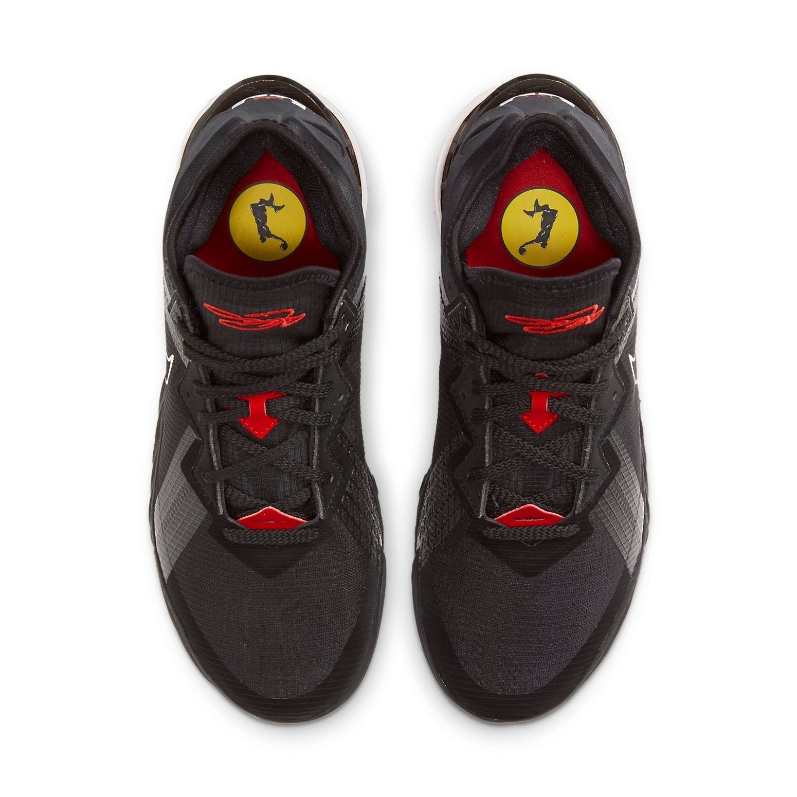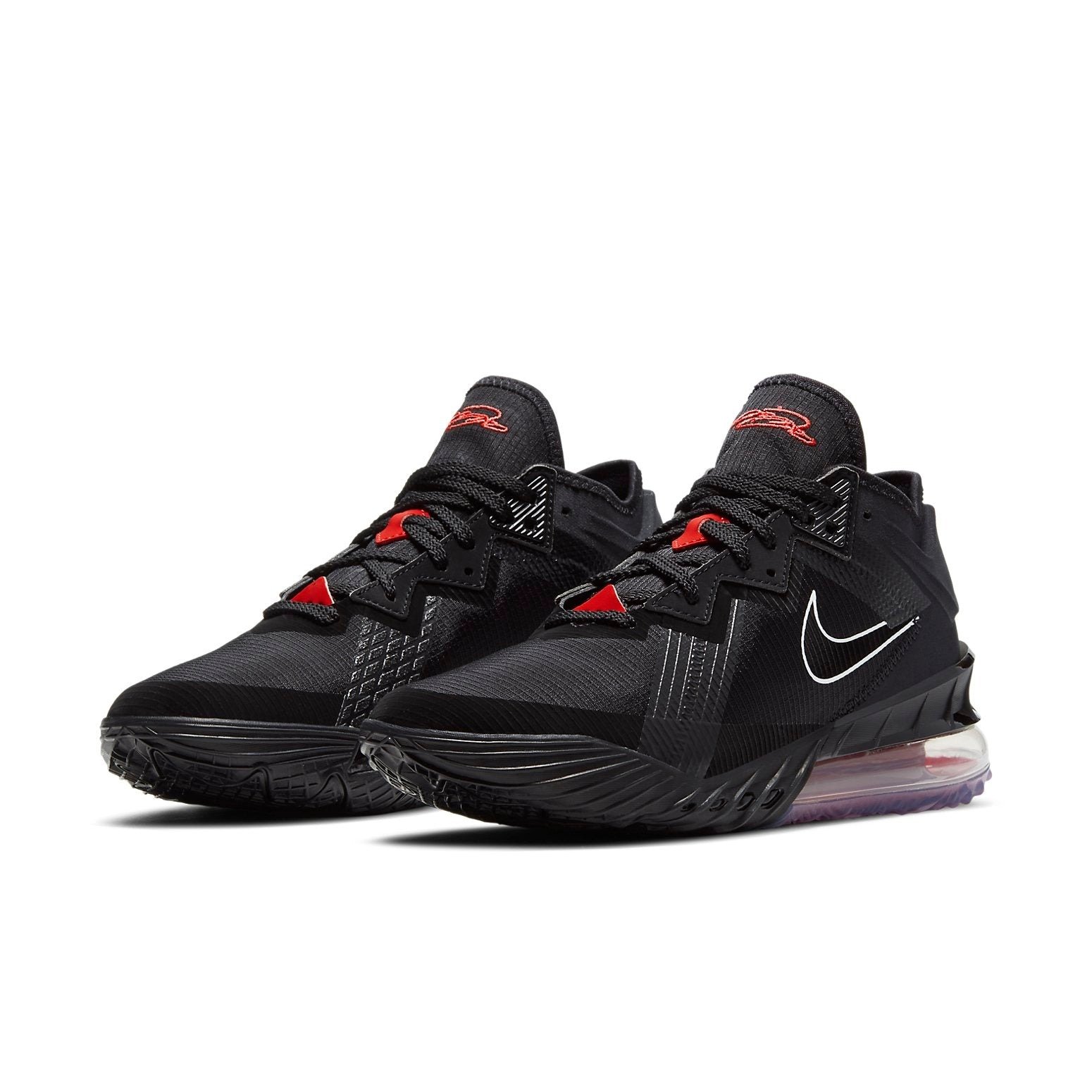 The Nike LeBron 18 Low Black Red is a basketball shoe inspired by LeBron James’ dominance on the court, featuring a predominantly black upper with vibrant red accents, released to offer athletes a high-performance and visually striking footwear option.The Nike LeBron 18 Black Red is crafted using premium materials, combining a black Battleknit 2.0 upper with durable synthetic overlays for enhanced support and stability on the basketball court. The shoe features vibrant red accents on the laces, Swoosh branding, and outsole, complemented by white details, creating contrast. With its low-top style, the LeBron 18 Low allows for agile movements. The shoe also incorporates responsive Zoom Air units in the forefoot and heel, providing optimal cushioning and impact protection. Our team loves the incorporation of the Battleknit 2.0 upper. Our experts appreciate how the Battleknit 2.0 allows unrestricted court movements while maintaining a lightweight feel. The Nike Lebron 18 Low Black Red was released on 11th March 2020 and sold at $160.