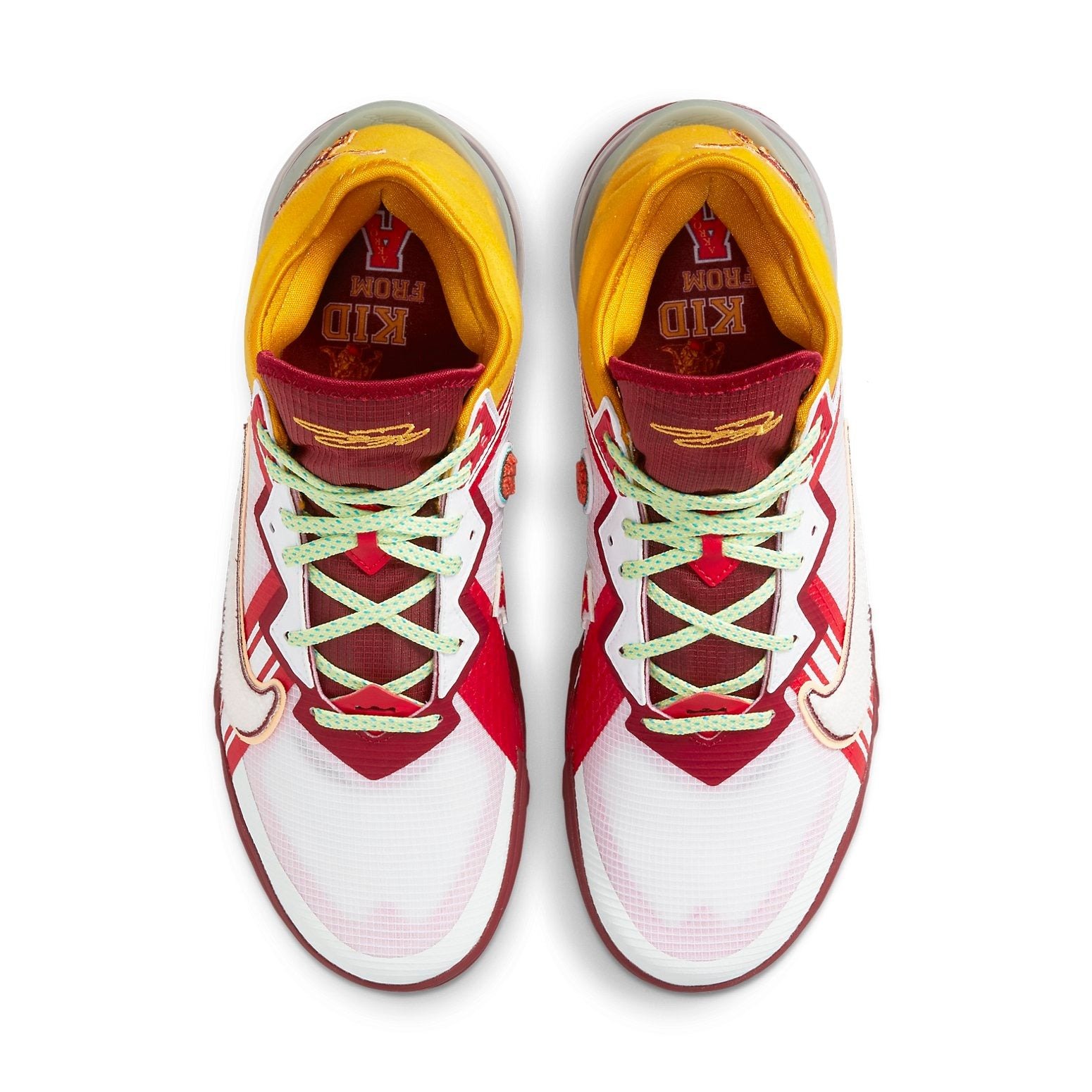 Nike teamed up with Ghanian fashion designer Mimi Plange to release the Nike LeBron 18 Low Mimi Plange Higher Learning. This design draws inspiration from high school varsity jackets.The Nike LeBron 18 Low Mimi Plange Higher Learning features a white, mustard, burgundy, and crimson textile upper with chenille Swooshes, referencing varsity letters. On the insoles, text reading “Just A Kid From Akron” is printed in block letters, a slogan that LeBron has continuously used in his career.The Nike LeBron 18 Low Mimi Plange Higher Learning released in June of 2021 and retailed for $170.