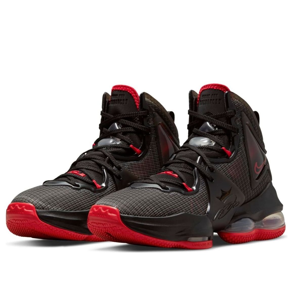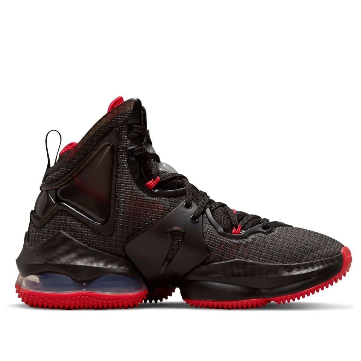 The Nike LeBron 19 Bred (GS) features a Black/Dark Grey/Red colorway. This Nike LeBron 19 was first released for $130 on October 22, 2021.
