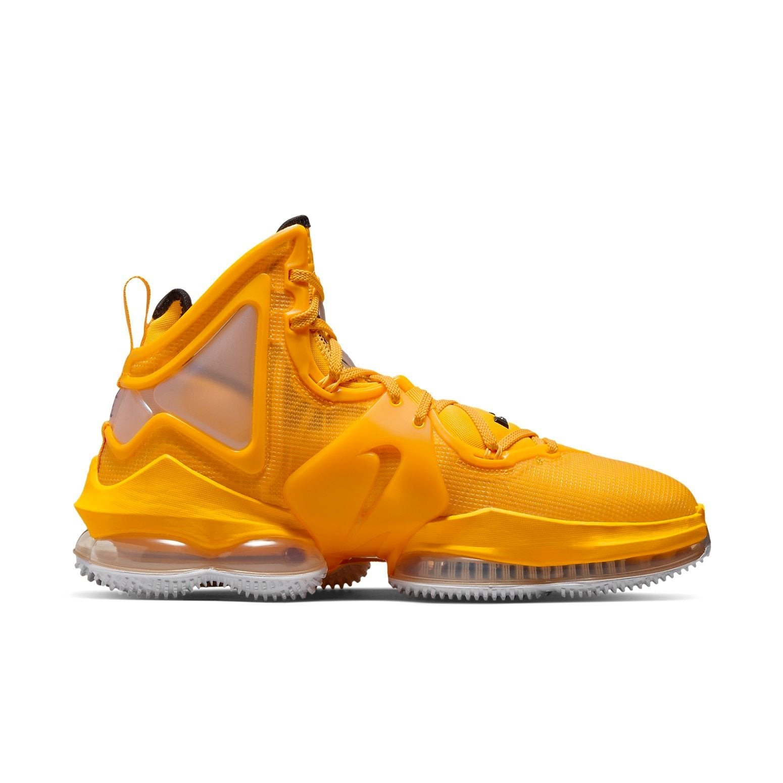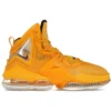 The Nike LeBron 19 Hard Hat was released as the result of a collaboration between Nike and Lebron James, in a colorway that nods to the hard hat of construction workers. The Hard Hat Nike LeBron 19 merges University Gold, white, and black in its composition. The shoe has University Gold dominating most of the upper, creating a bold contrast with black accents on the lining and branding, while the white outsole adds more contrast. As for branding, it showcases black LBJ branding on the forefoot, hazard-striped Swoosh logos on the lateral ankles, and a printed graphic depicting an excavator on the heel. Other characteristics encompass a snug fit, an updated cushioning system, and an interior lining fashioned from an overlay. A notable feature of the Nike LeBron 19 Hard Hat is the translucent cushioning capsules around the mouth, sole, and tongue that emphasize the significance of building a strong foundation. The shoe was released on June 1st, 2022, retailing at $200.